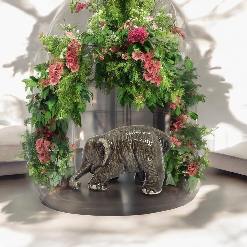 CHARMING PIECE. This cub elephant with a delightful visage will surely capture your heart and put a smile on your lips. You can mix and match with other Safari animals or other Elephant in difference poses decorative pieces to create a menagerie in your own home.