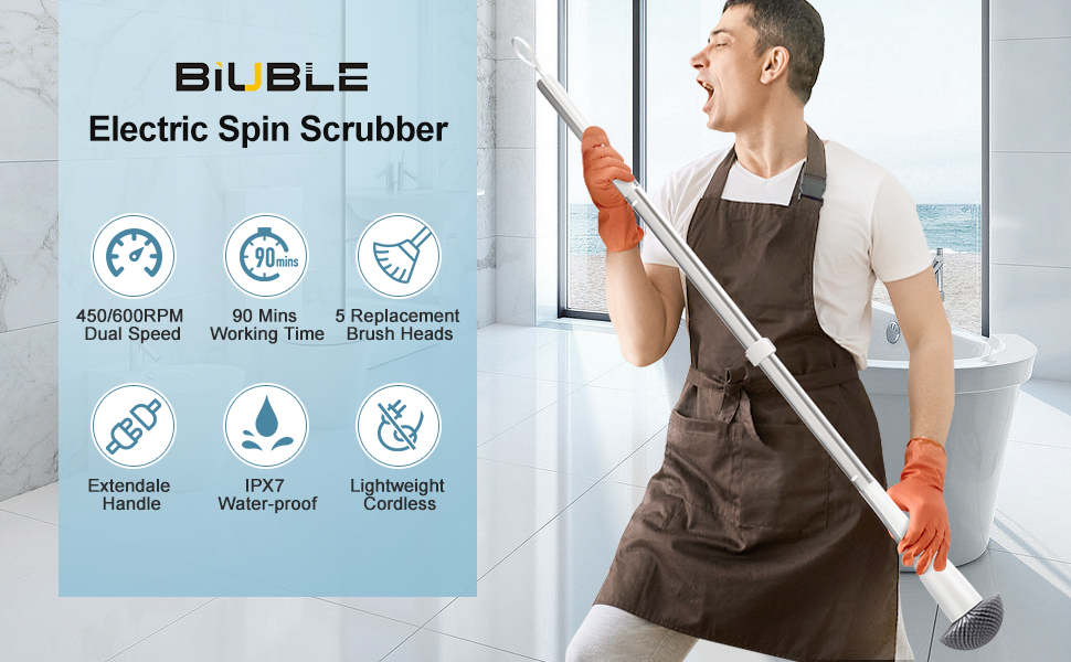 ❀ [2-YEAR QUALITY QUALIFIED & 3-MONTH MONEY BACK & LIFETIME CUSTOMER SUPPORT]: The BIUBLE electric spin scrubber offers 2-year quality qualified & 3-month money back policy, so you are no worry about the battery life if your family seldom uses it. The lifetime technique support will help solve all your issues.