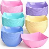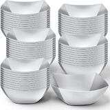 What You Will Get: you will get 50 pieces of square plastic disposable bowls for parties altogether, available in white, 8 ounces, suitable foods include generally snacks, salads, sauces etc; suitable for parties, family dinners, holidays and so on.