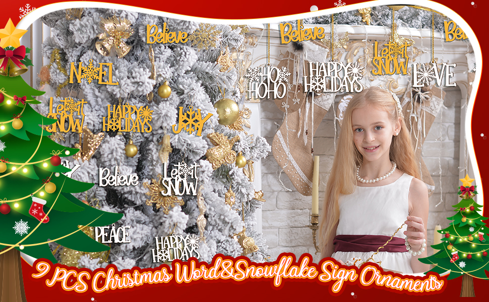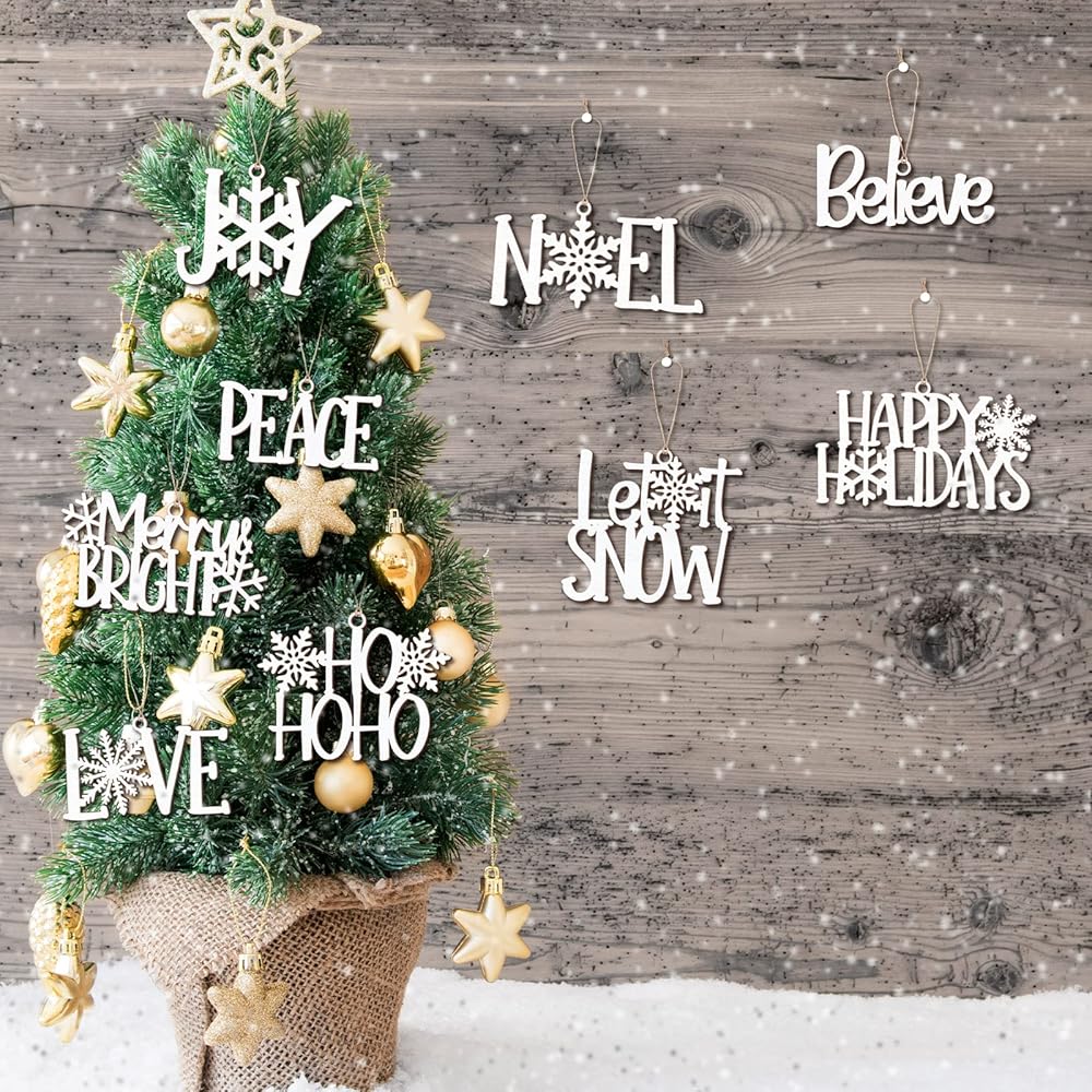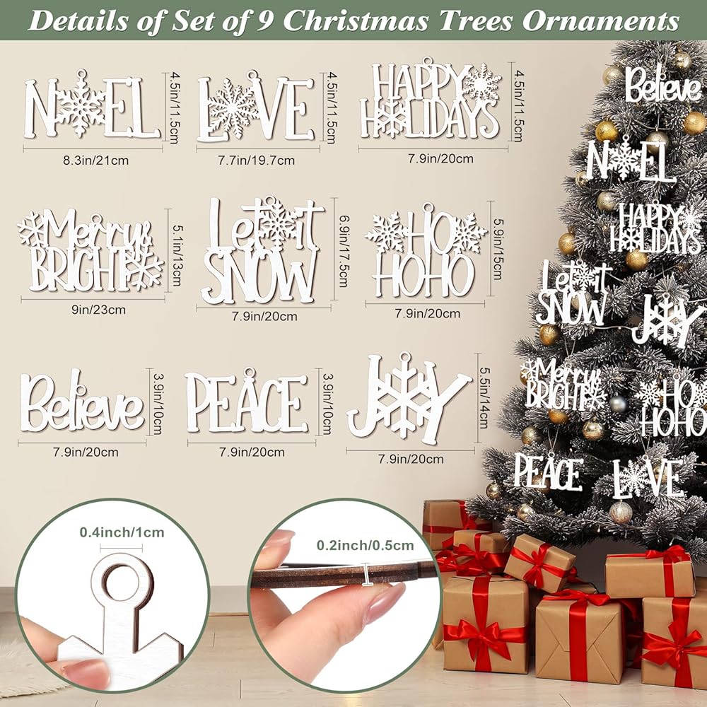 Package Include: you will receive 9 pieces of Christmas wooden ornaments in white and red color, which are designed in 9 different style, including words [believe], [joy], [let it snow], [peace], [hohoho], [happy holidays], [Love] and so on; There is also a rope in 13 feet equipped with these decorations for easy hanging, creating a joyful Christmas atmosphere, the quantity is sufficient to meet your daily or holiday decoration demands