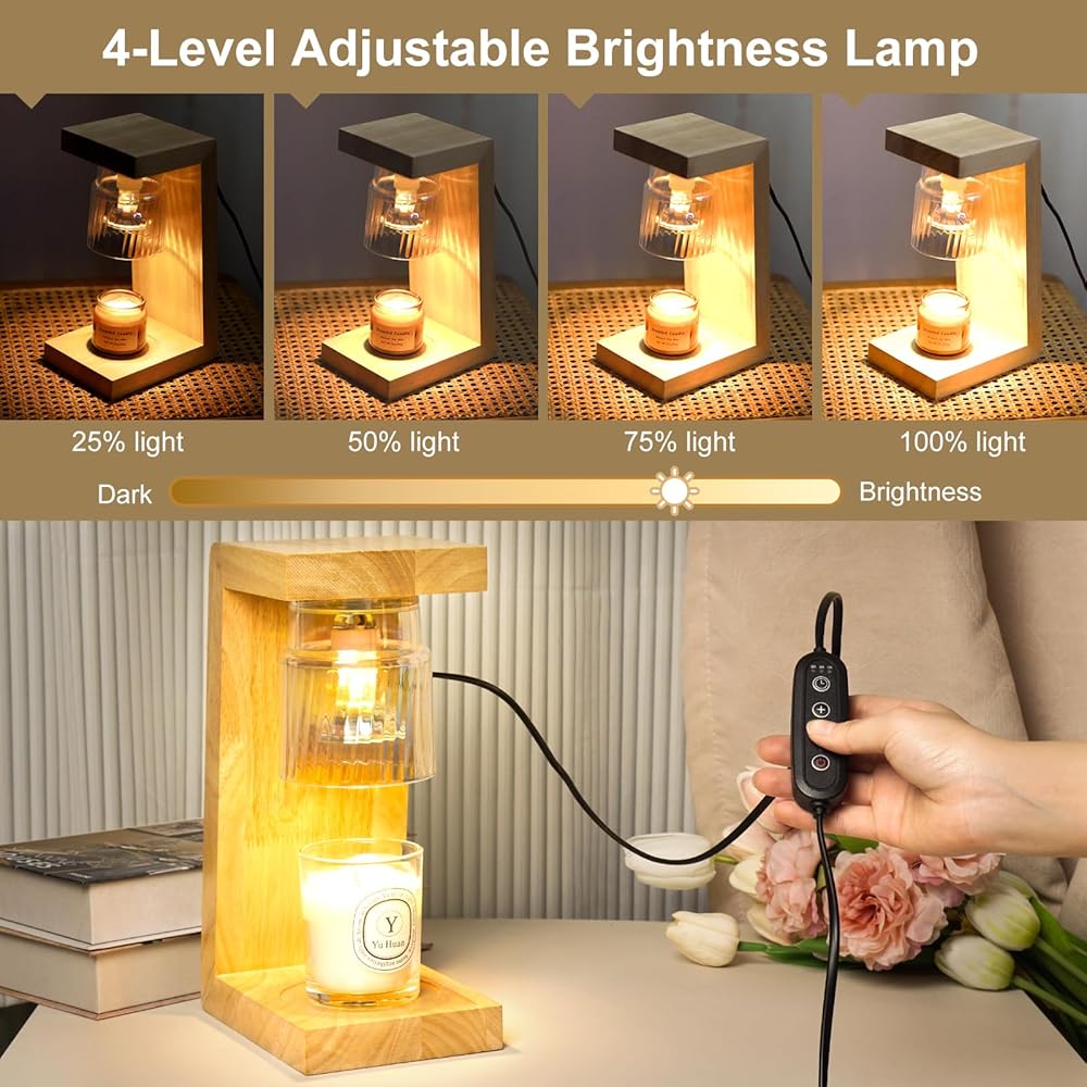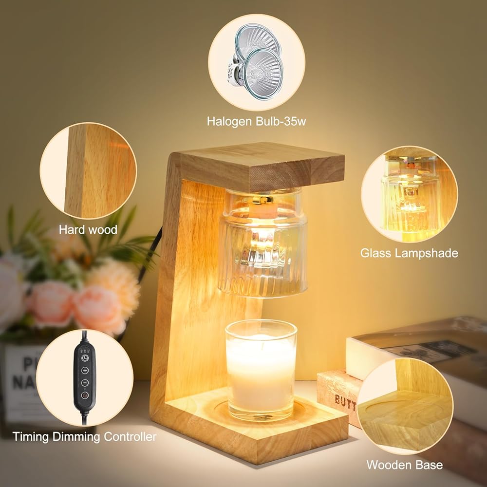【Elegant and Convenient】FADACHY candle lamp base is formed by heat-resistant wooden material, very simple and atmospheric, more elegant and natural under the light, modern style. The electric candle warmer melts the candles from top to bottom, distributes the scent quickly and efficiently using a GU10 halogen bulb with a power of 35W, and the light is safer and softer, as if you are in nature.