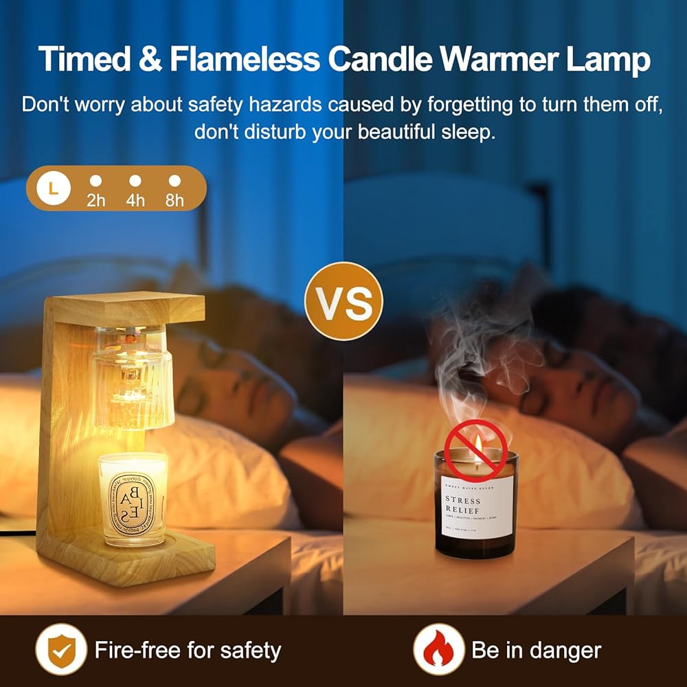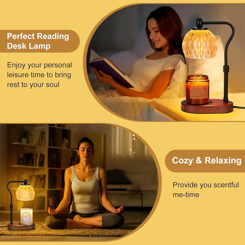 【Ideal Home Decoration】The design of this candle warmer lamp mainly consists of hard heat-resistant wood combined with a base, crystal translucent glass shade for jar candles of various size model brands. It nicely combines a table lamp warmer and aromatherapy and is a perfect addition to modern sophisticated bedroom decor and living room decor.
