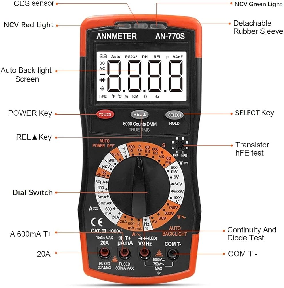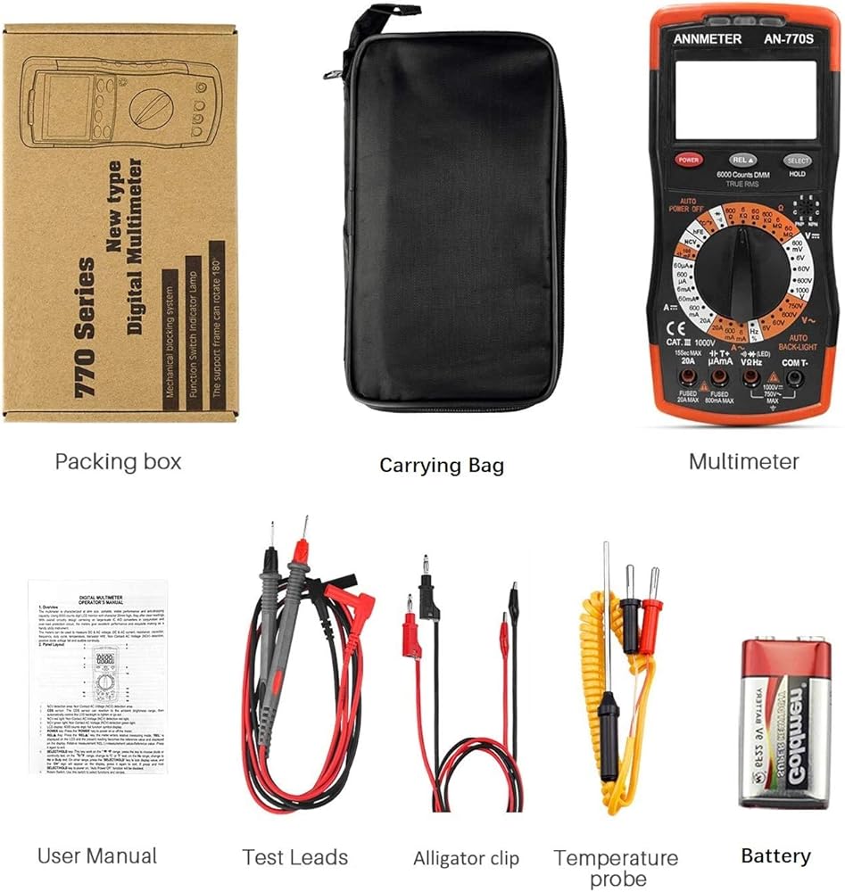 ✅【HIGH ACCURACY】 Featuring high accuracy±0.8% of rdg + 2 digits (DC 1000V); ±1.5% of rdg + 3 digits (AC 750V); ±1.5% of rdg + 3 digits (Resistance 60MΩ). The AN-770S Multimeter meets the need of all electrical measuring aspects.