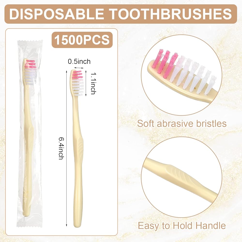You will get 1500 packs of quality disposable toothbrushes. Sufficient to meet your various needs. Made with soft bristles, these toothbrushes are gentle on your gums and effective at removing stains, plaque, and tartar for a brighter, healthier smile.