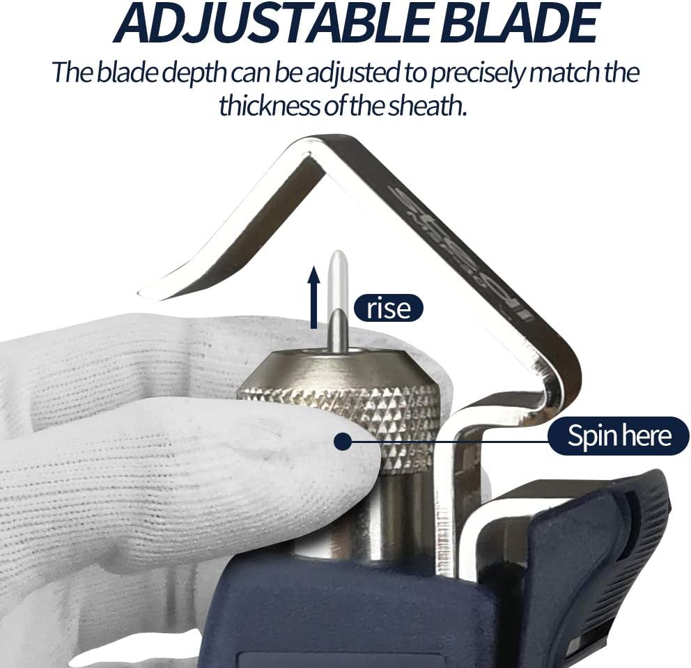 ADJUSTABLE BLADE: The blade depth can be adjusted to precisely match the thickness of the sheath.