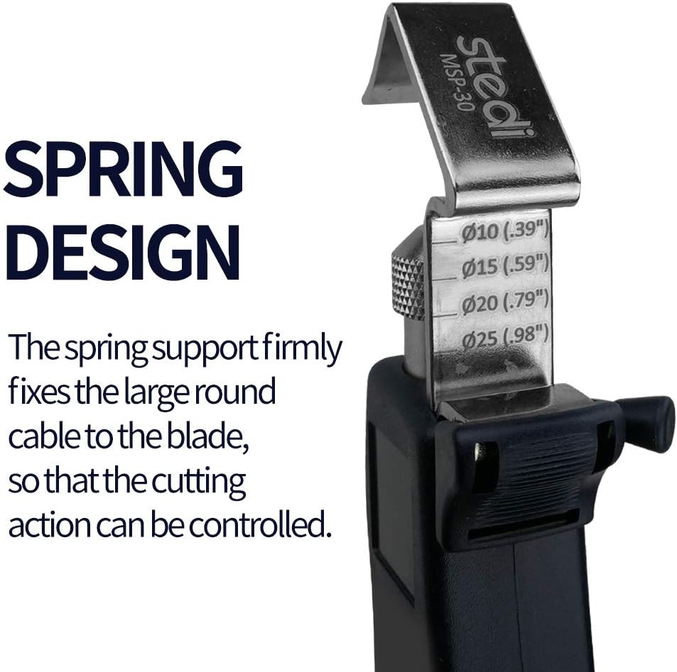 SPRING DESIGN: The spring support firmly fixes the large round cable to the blade, so that the cutting action can be controlled.