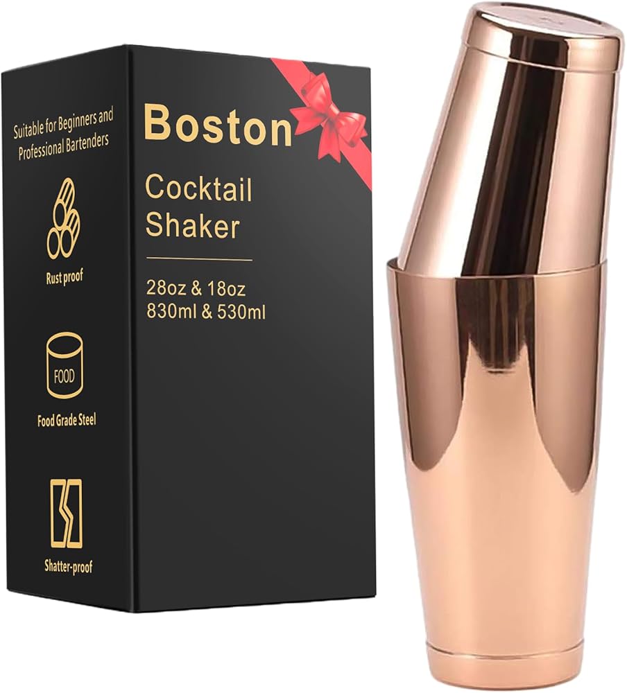 ★ATTRACTIVE & PRACTICAL DESIGN: Our shaker tins not only look unique & elegant but also get designed & tested to last. Unlike cobbler shakers, this Boston shaker set will not freeze shut, drip or spill as you pour your drink out.