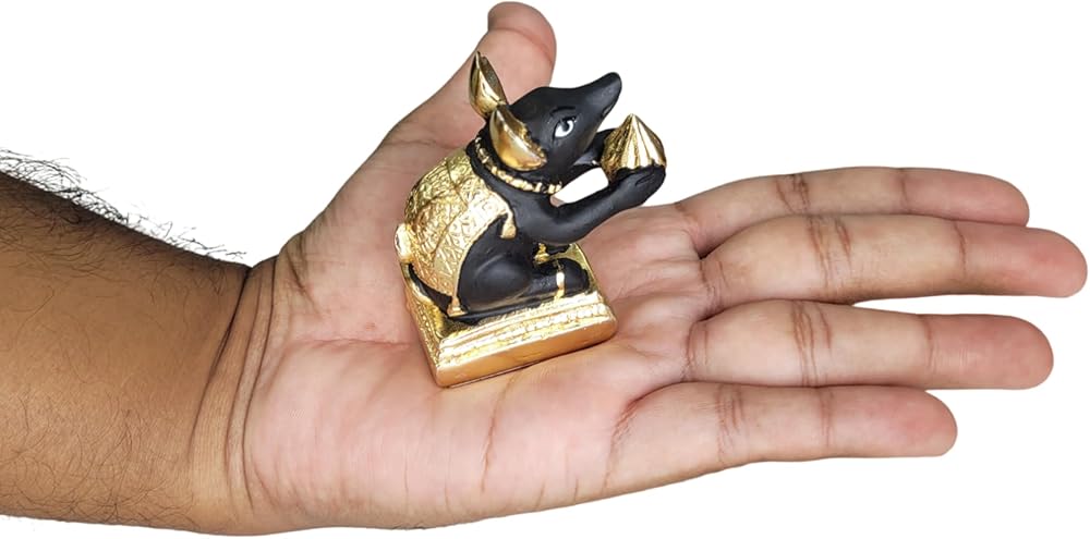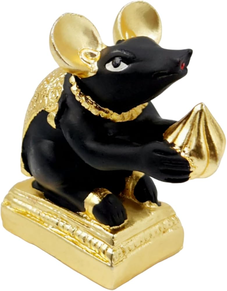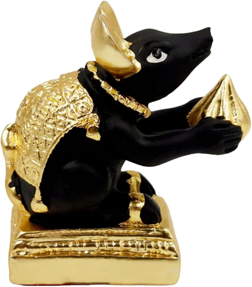 Metal Gold Plated Mushak Idol for Ganpati Pooja Ganeshji Mooshak Mouse Mushakraj (Black)