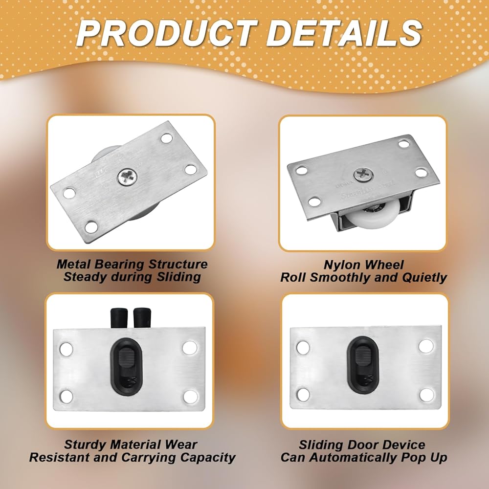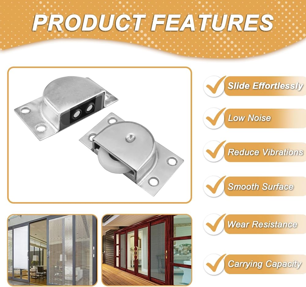 【Smooth and Quiet】Sliding door roller built-in metal bearing structure, smooth and steady during sliding, allowing you to open doors and windows easily. Nylon wheels can effectively reduce the noise when sliding and will not scratch the floor, you can enjoy a quiet home environment.