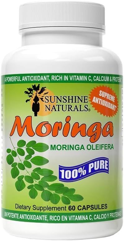 Superfood – Moringa Oleifera is a plant considered to be a very good food supplement for its high protein value (essential amino acids). Daily use of two Moringa oleifera capsules from Sunshine Naturals provides vitamins such as B1, B3, niacin, pyridoxine, vitamin C, E, and beta-carotene (vitamin A), minerals such as magnesium, potassium, calcium, phosphorus, and polyphenols, being a rich source of natural antioxidants, promoting well-being, and improving immunity.