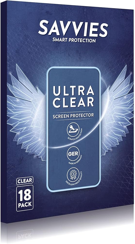 High Quality, HD-Clear, 3D Touch Compatible, very simple assembly Savvies Screen Protector SU75 UltraClear (18 Pack) fits ideally as a reliable and invisible protection - compatible with Hmwirble E90, your device. Superior High Transparent and Ultra Thin: The ultra thin, 99% highly transparent HD surface of the protection film allows a pin sharp and genuine presentation of contents and colors on the screen. The Screen Protector is almost invisible when applied. Easy installation: bubble and dust-free: Owing to the special silicone adhesive layer, the Screen Protector can be easily applied bubble-free. The film nearly automatically applies itself to the screen. Due to the anti-static film material of the Screen Protector the film is not collecting any dust during application. A residue-free removal or repositioning of the protection film is possible at any time. Real Touch Sensitivity: Savvies Screen Protectors are optimized for use on touch screens. High Quality: The Savvies Screen Protectors are manufactured in Germany with the latest high-precision laser machinery. Exact tailoring to forms and excellent border adhesion are guaranteed - compatible with Hmwirble E90, your device. 18x Savvies SU75 Screen Protector compatible with Hmwirble E90 (18x Display).