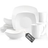HIGH-QUALITY CHIP RESISTANT PORCELAIN: This sophisticated, premium-quality white dish set has the right balance of weight and size, making family mealtimes extraordinary for years to come. Our square dinnerware set is microwave and oven safe, making cooking simple and quick. Note: Handle with care, as the plates and bowls sets can get hot when placed in the microwave.