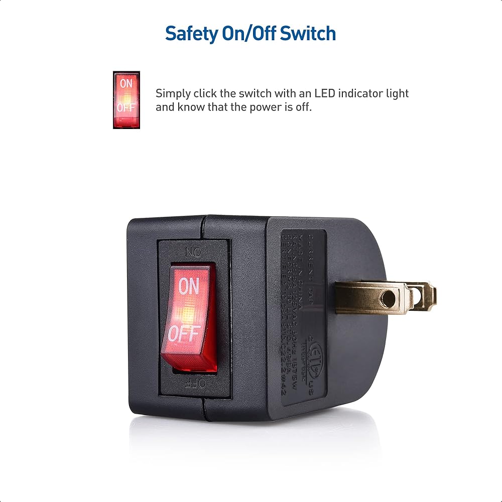 من السهل التحقق من ضوء مؤشر إيقاف التشغيل في لمحة؛ قم بإيقاف تشغيل الطاقة بسرعة إلى مفتاح المنفذ هذا بدلاً من توصيل وفصل السلك باستمرار من الحائط باستخدام مفتاح التشغيل والإيقاف هذا للمنفذ