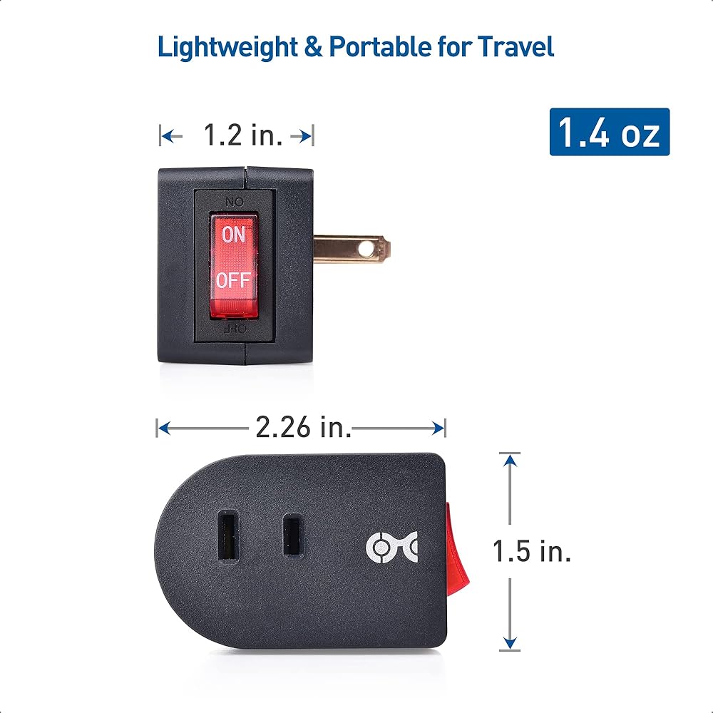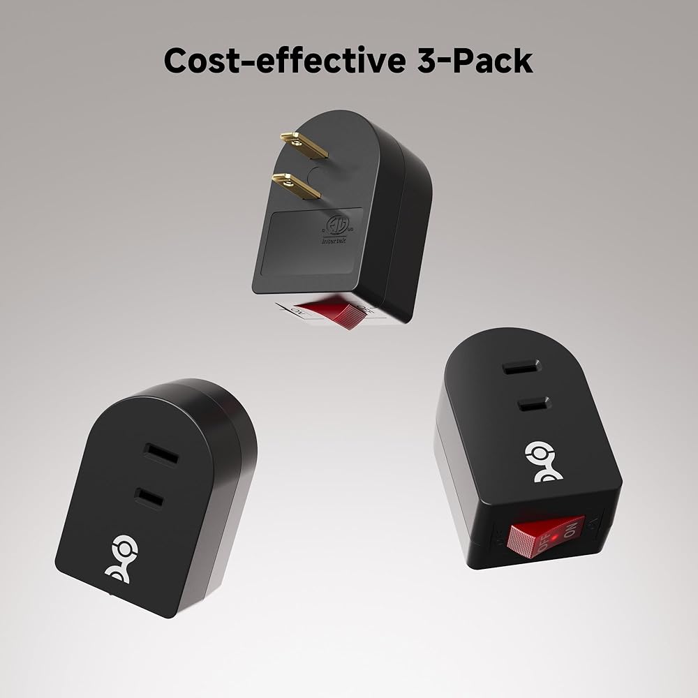 3 عبوات من مقابس مفاتيح المنافذ فعالة من حيث التكلفة؛ يوفر مفتاح تشغيل 2 Prong Plug محول مخرج ليأخذه معك أثناء السفر