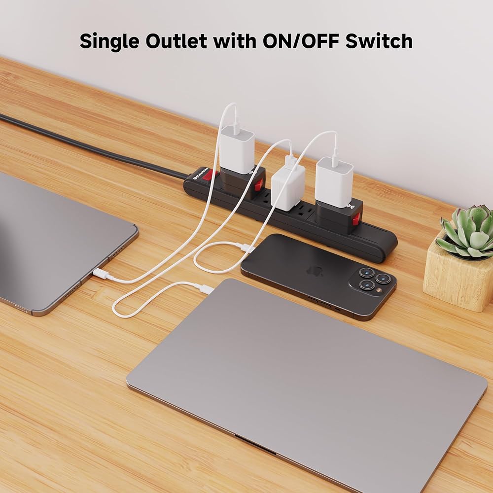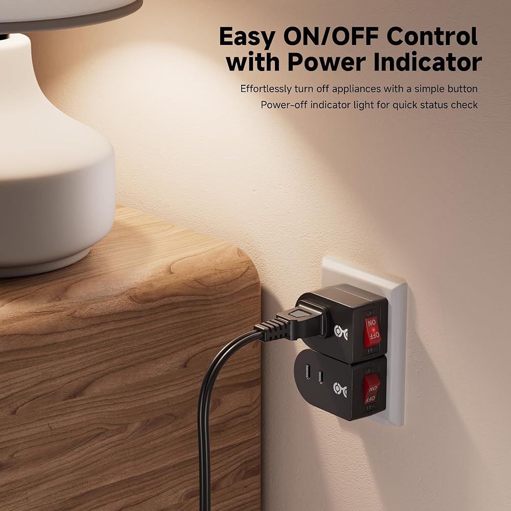 منفذ واحد مع مفتاح يحول منفذ الحائط القياسي إلى مفتاح توصيل مع زر الطاقة؛ قم بإيقاف تشغيل الجهاز الذي يصعب الوصول إليه بسهولة من أجل السلامة أو توفير الطاقة