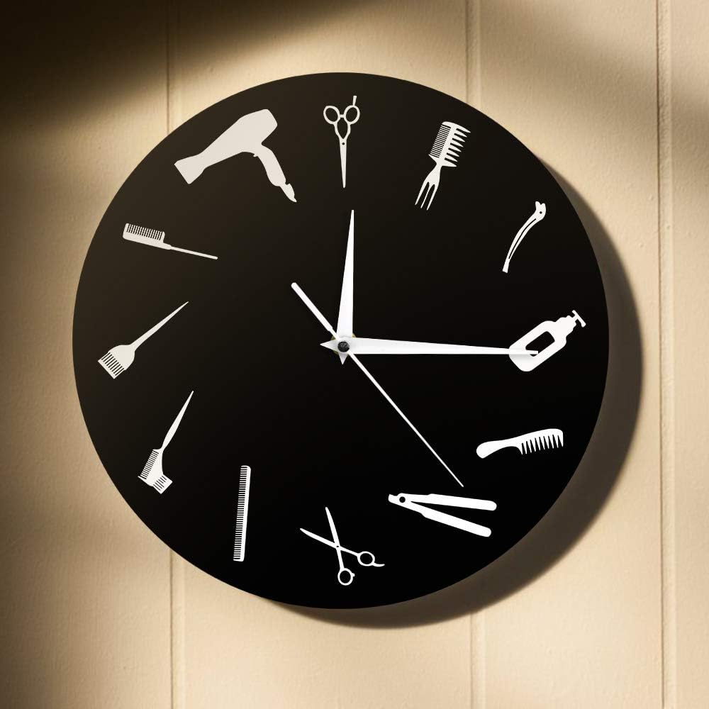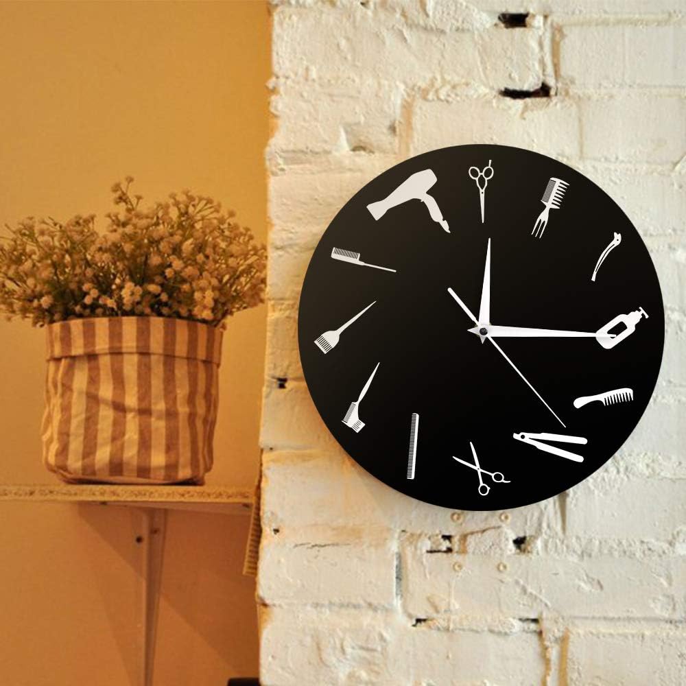 Modern Wall Clock Barber Shop Perfect Decoration: Our hair salon signs dress up any place such as home, living room, bedroom, classroom, barber shop or beauty salon studio wall hanging decorative sign display, and it is hairstylist gift ideas. Gifts for hairdressers clock.