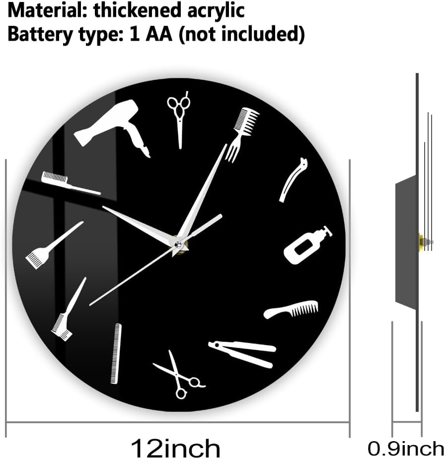 The Geeky Days 12 Inch Barbershop Clock Barber Equipment Tools Silent Wall Clock Battery Operated Quartz Modern Barber Shop Business Sign Acrylic Hanging Watch for Beauty Hair Salon Hairdresser Gift