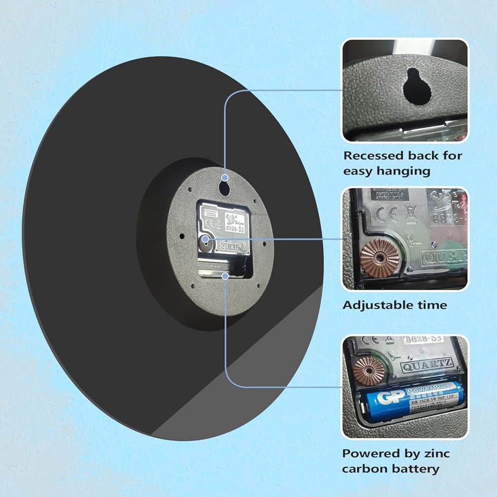 Silent Non Ticking Movement: Barbershop clock features noiseless mechanism, precise quartz sweep movement guarantees accurate time and absolutely silent environment. This time clock is powered by 1 AA Battery. (not included)