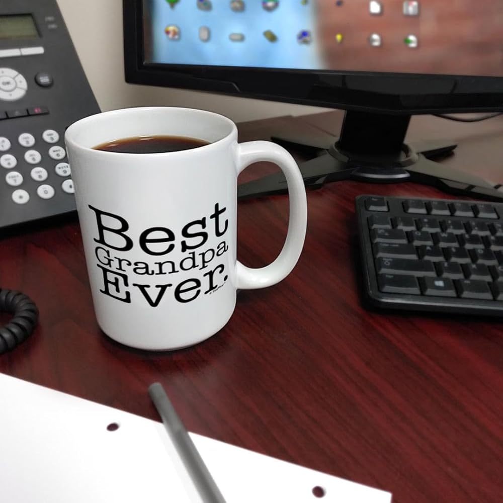 Makes a great Father's Day gift or birthday gift for Grandpa. This traditional 11 ounce white ceramic coffee mug is perfect for any hot beverage. Wide mouth and large C-handle allow for easy, every day use. Whether drinking your morning coffee at work, or sipping on a hot cup of tea at home, this mug is up to the task. Microwave and dishwasher safe for your convenience. All designs are lead free.