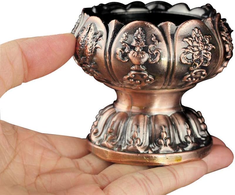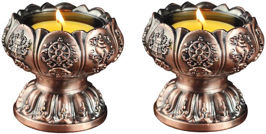 Lotus Flower Votive Tealight Holder, Buddhist Tealight Candle Holder - Tibetan Buddhist Water Offering Cup, Tibetan Oil Lamp Holder Buddhist Supplies for Meditation Buddha Altar, Set of 2 (Copper)