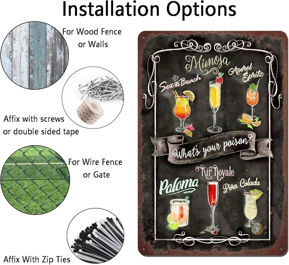 We aim to provide the home with a number of different selections with tin signs. It's important to add character to the rooms inside of the home and the most effective way to do that is through vintage wall décor. Our unique signs are and will certainly add a good dose of character or whimsy to your, Kitchen, home, office, bar, restaurant, man cave or garage! It can also be a gift for anniversary, wedding, new home, familyparty, birthday, Christmas, Valentine's Day. When you choose metal wall art that have colors from a room, it helps tie everything together for a coordinated finished product. Our vintage tin metal signs are with four small pre-drilled holes in each corner of this painting to make displaying a breeze, can be mounted on the wall by nails on four corners or double-sided tape. The edges of each tin sign are rolled and hemmed for safe handling. Designed of tin and intentionally faded/worn, this Art Sign will definitely add a retro feel to your house.