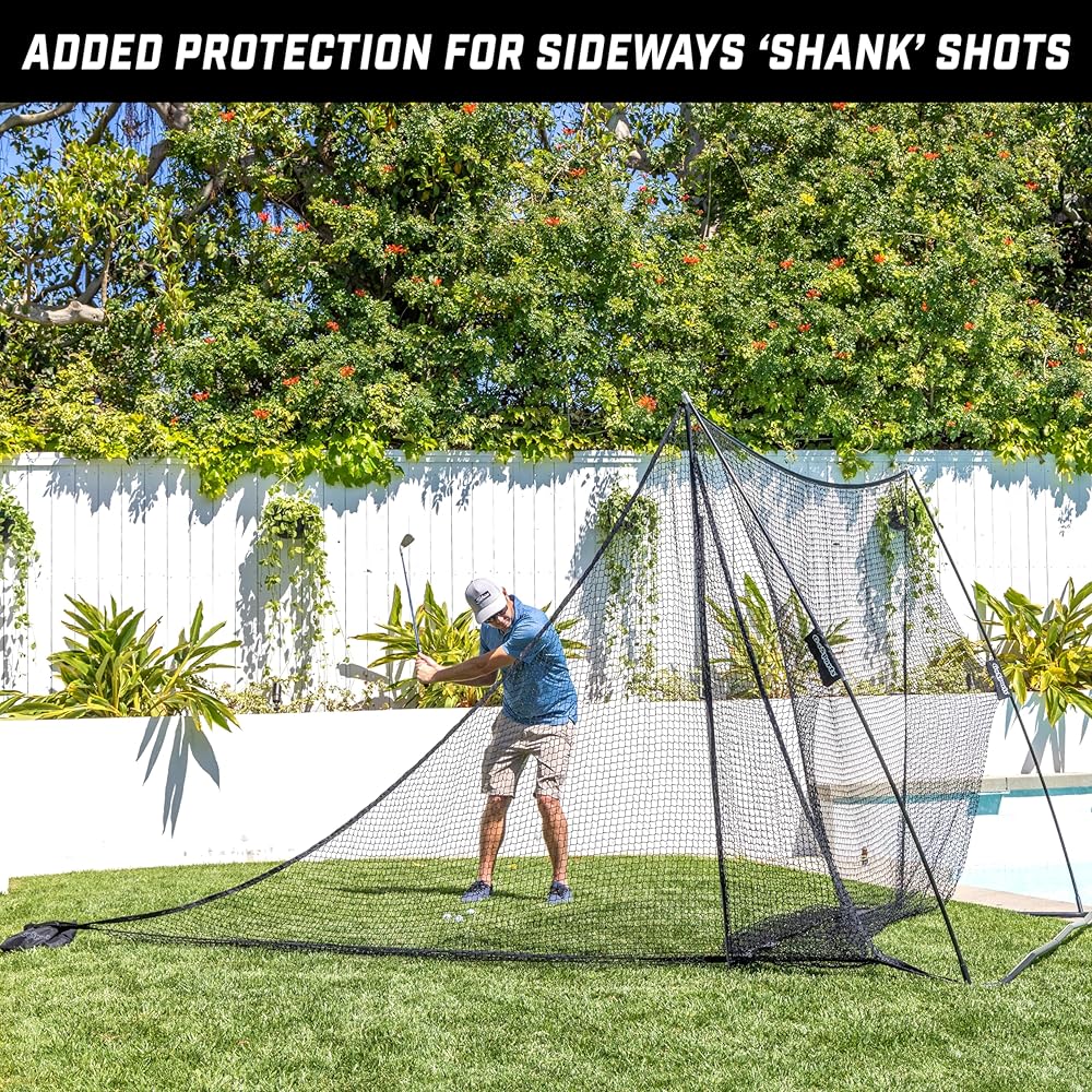 SHANK NET: Attaches to most 10 x 7 ft and 7 x 7 ft golf hitting nets to provide a secondary net that helps to catch errant sideways shots (the dreaded shank or hosel rocket)