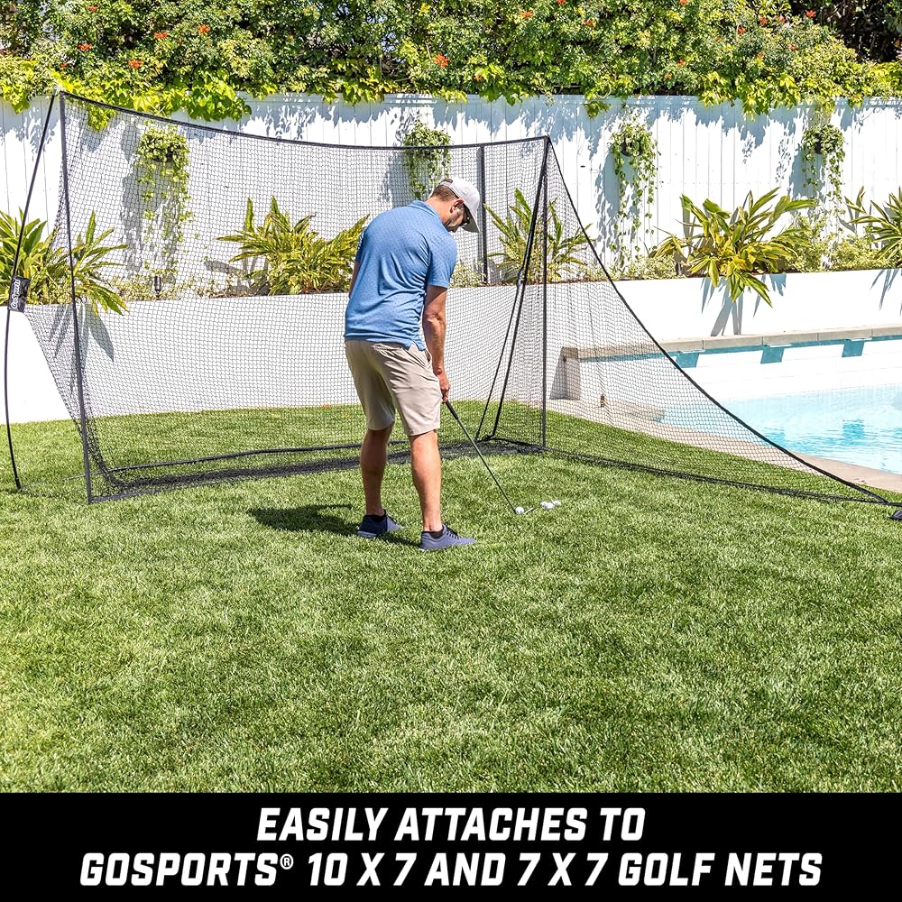COMPATIBLE WITH MOST GOLF NETS: Designed to work with GoSports brand 10 x 7 ft and 7 x 7 ft golft nets and most other brand bow type frame nets