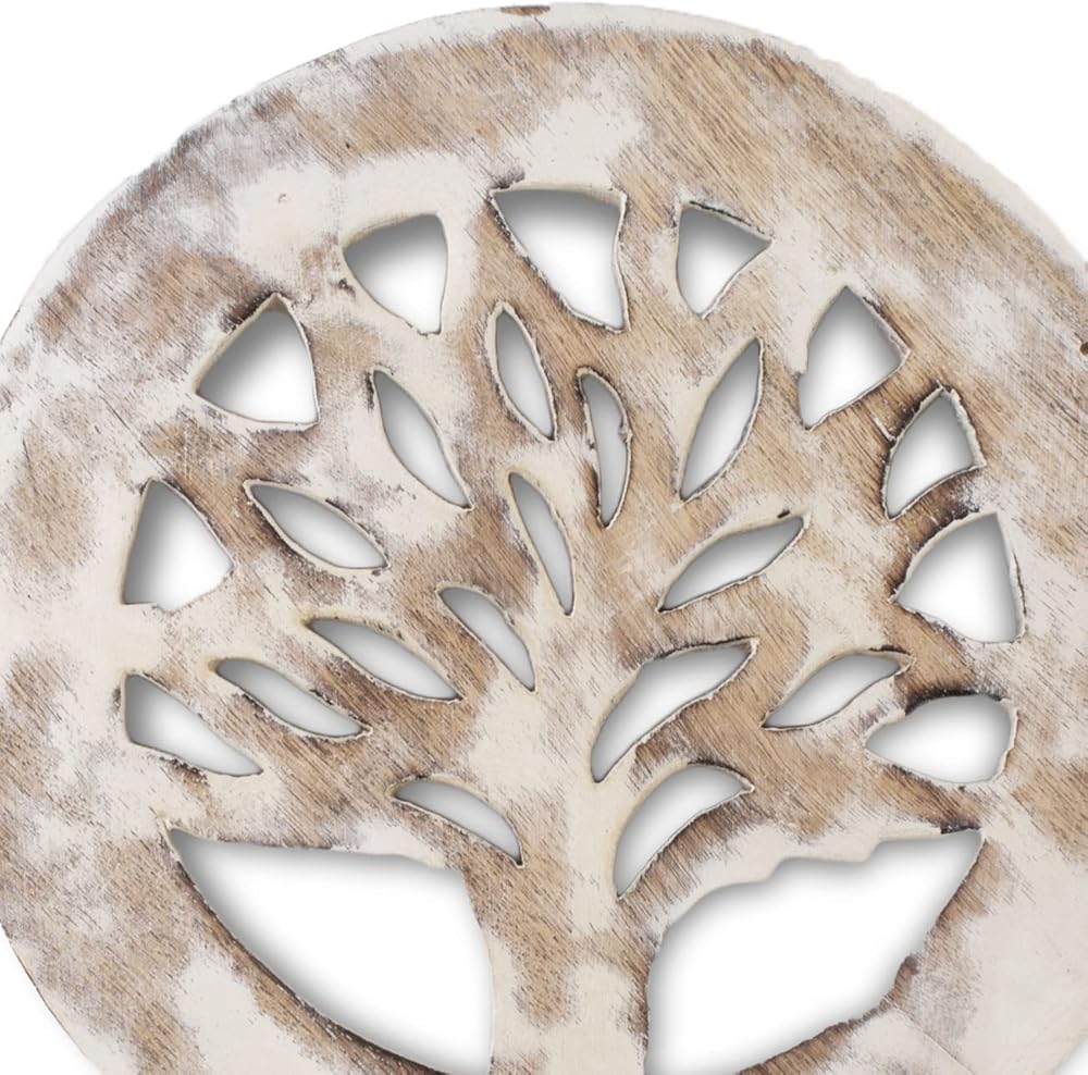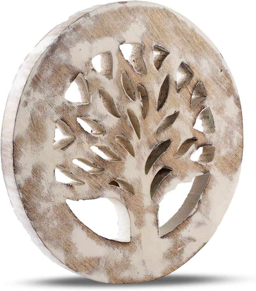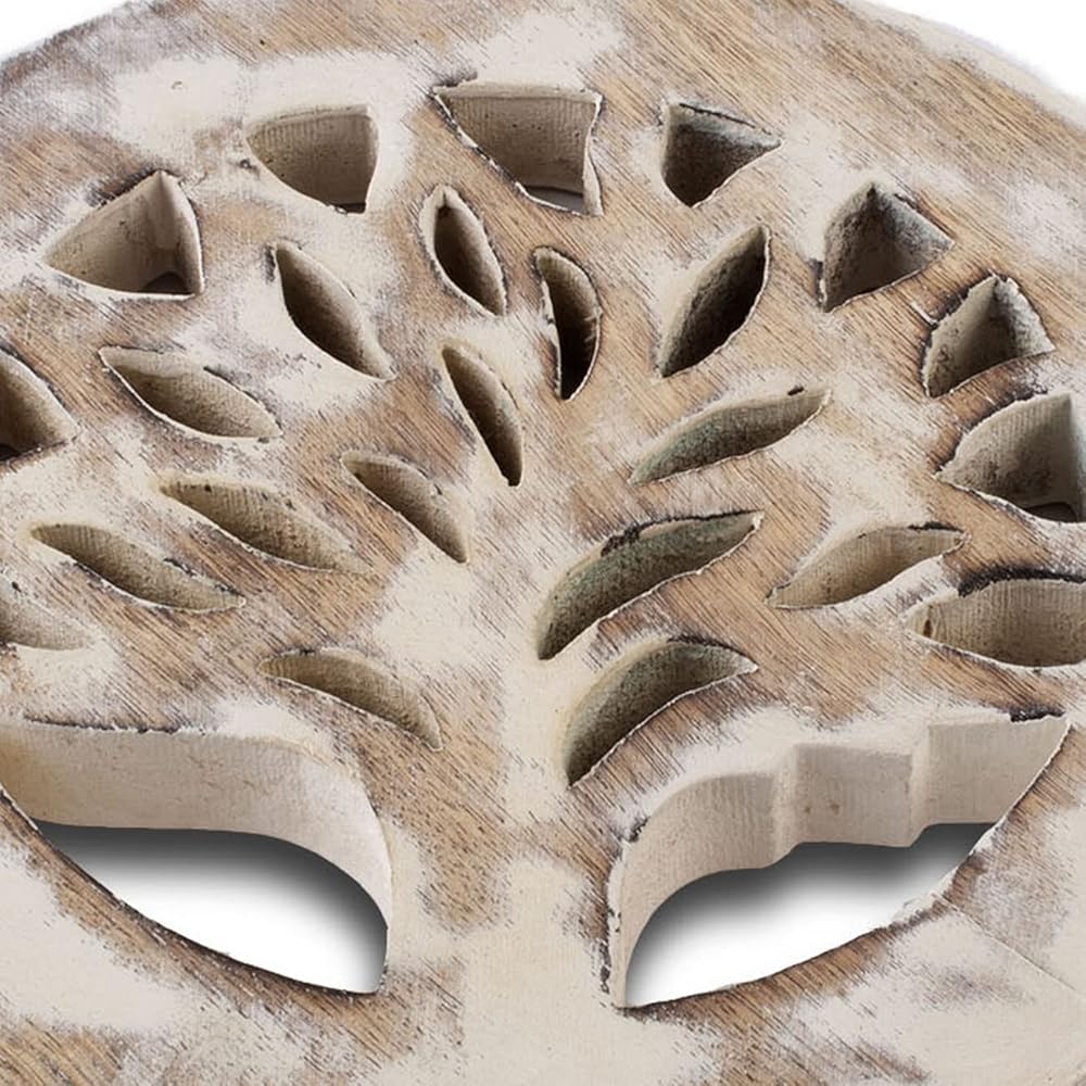 Handmade Wooden Trivet for Hot Dishes Plates & Pots Holder Hot Pad for Kitchen & Dining Table Decor Cookware Heat Resistant Rustic Decorative Carvings Tabletop Home & Dining Table Essentials (White)