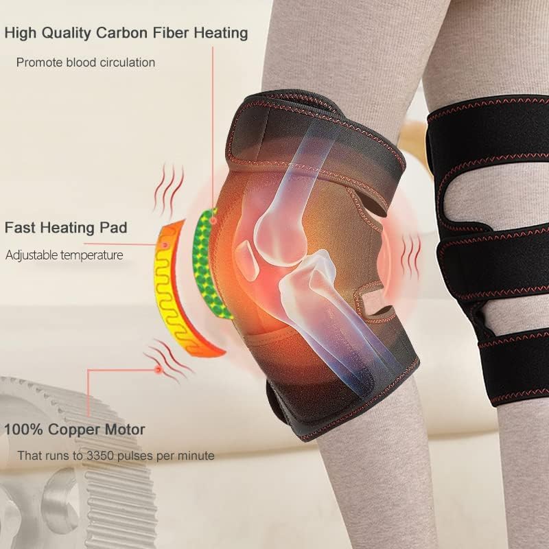 Knee Massager with Heat & Vibration, Knee Braces for Knee Pain Relief, Heating Pad for Arthritis, and Circulation Heated Knee Brace Wrap for Injury and Joint Recovery (No Battery)