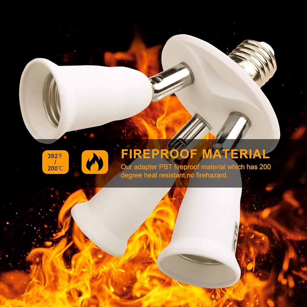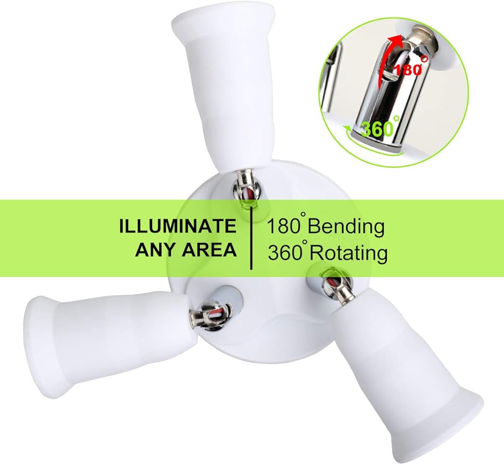 3 in 1 Light Bulb Socket Splitter, E26/E27 Multi Light Socket Adapter 360 Degree Adjustable, Standard Base Converter for LED CFL Lamp Bulbs, 60W Each Port, Total 180 Watts