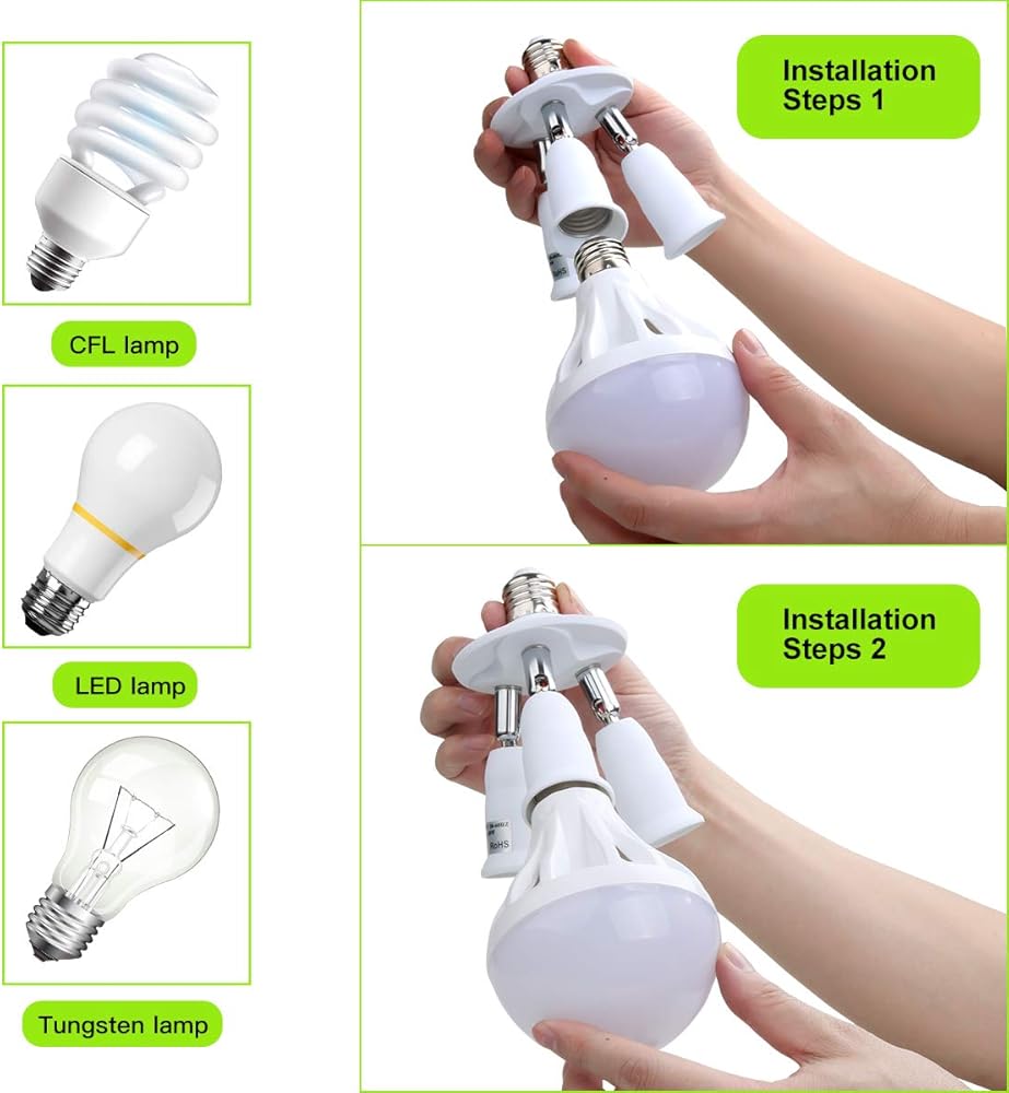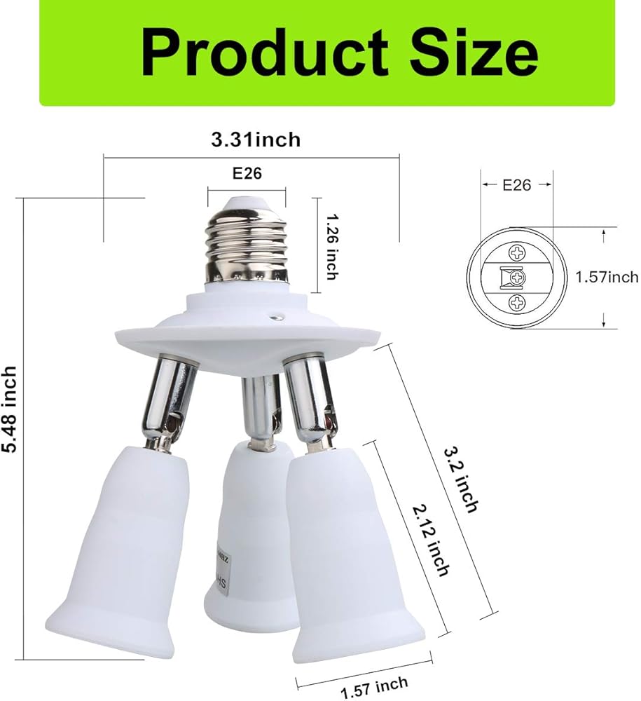 Perfect Adapter for Lighting Needs:Maybe you use a single socket light cord with a large paper lantern in studio or home,it was not providing enough light.You purchase along with 3 LED bulbs ,no trouble screwing into the light socket splitter ,then you would know it is a perfect choice for you lighting needs
