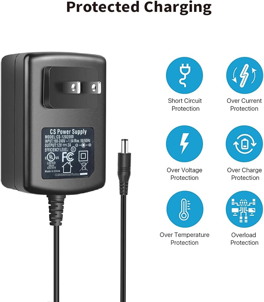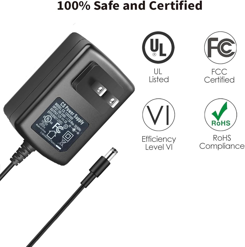 Specifications: Input: AC 100-240V, 50-60Hz; Output: DC 12V 0-1000mA 12W. Connector Size: 5.5*2.1mm. Cord Length: 10 feet (3m).