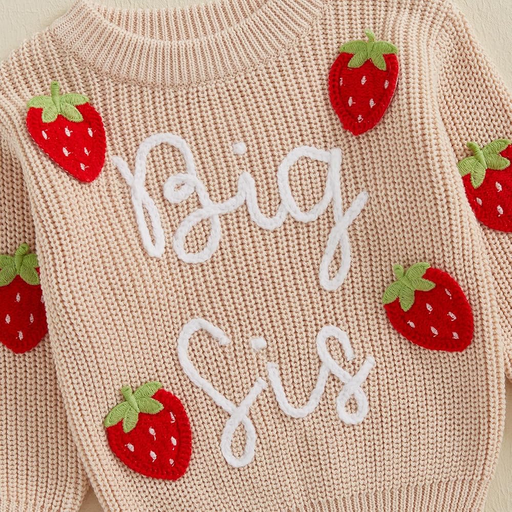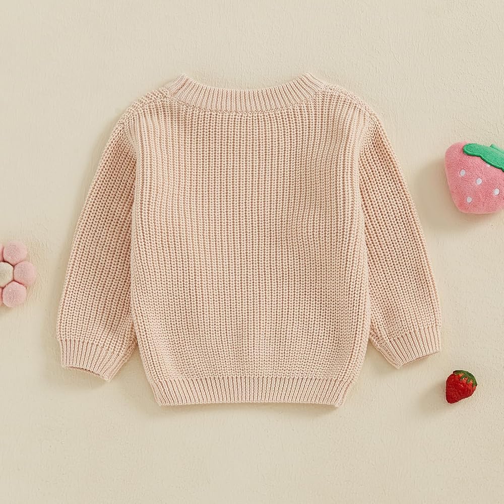 Baby Girl Fall Sweater Floral&Letter Embroidery Long Sleeve Round Neck Chunky Knitwear Pullover