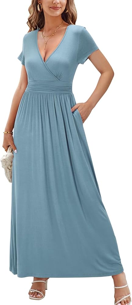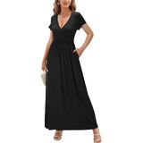 OUGES Maternity Maxi Dress Wrap V Neck Baby Shower Pregnancy Dresses for Photoshoot