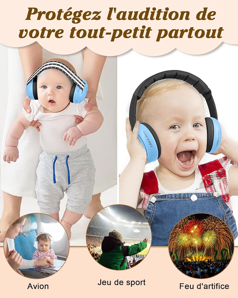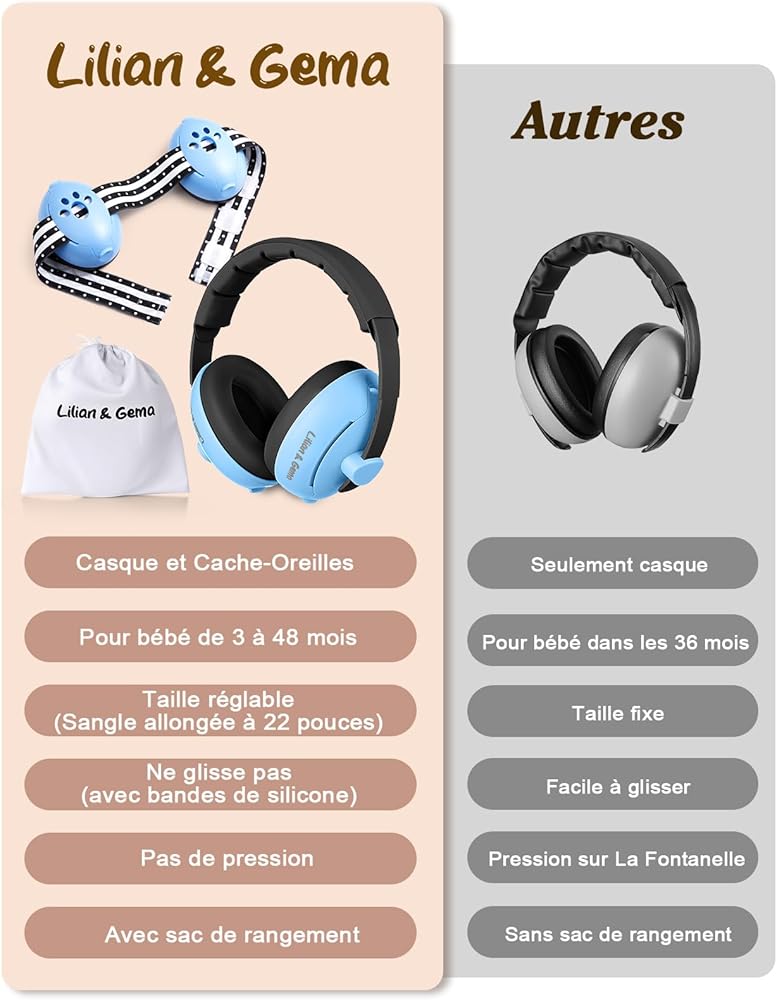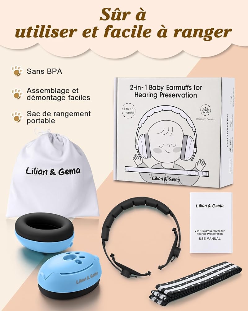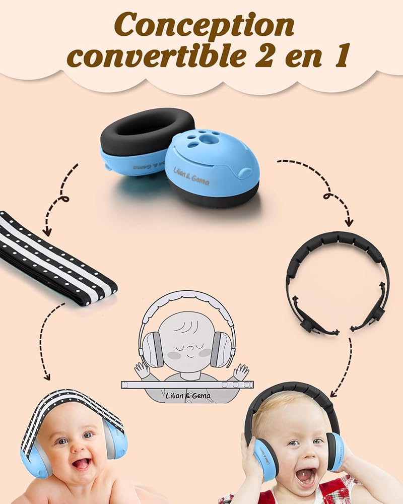 2-in-1 Design - Lilian&Gema baby headphones for noise boast a versatile 2-in-1 design, suitable for infants aged 3 to 48 months. Featuring a three-position adjustable anti-slip elastic headbands and traditional headphones, both are ultra-lightweight and adjustable, support sleeping and activity according to the baby's needs and preferences, Whether outdoor and indoor.