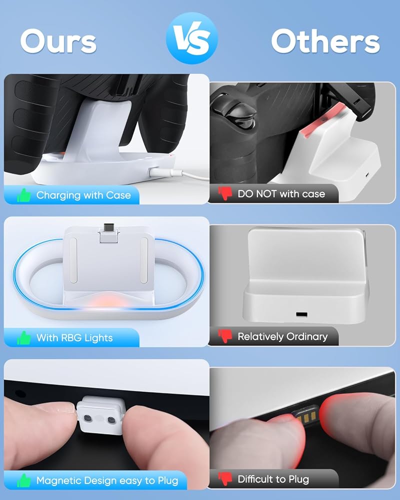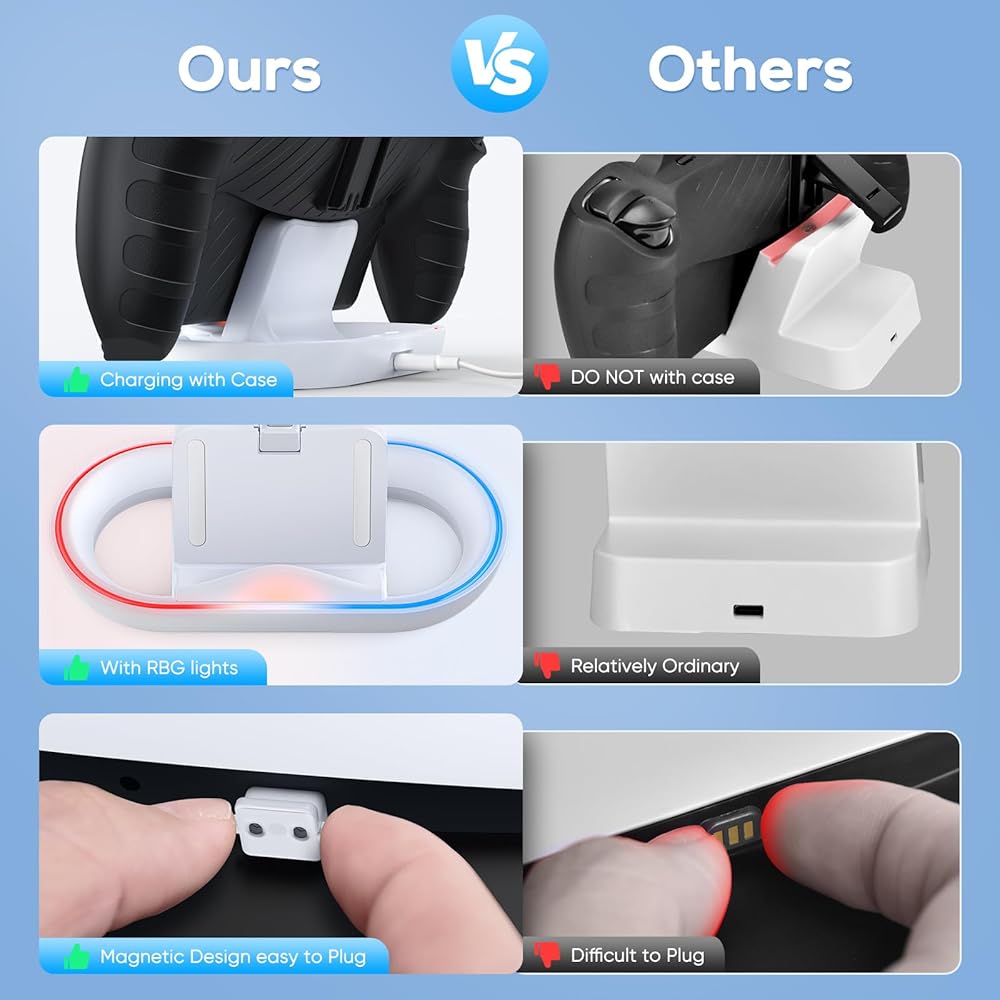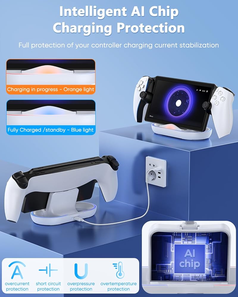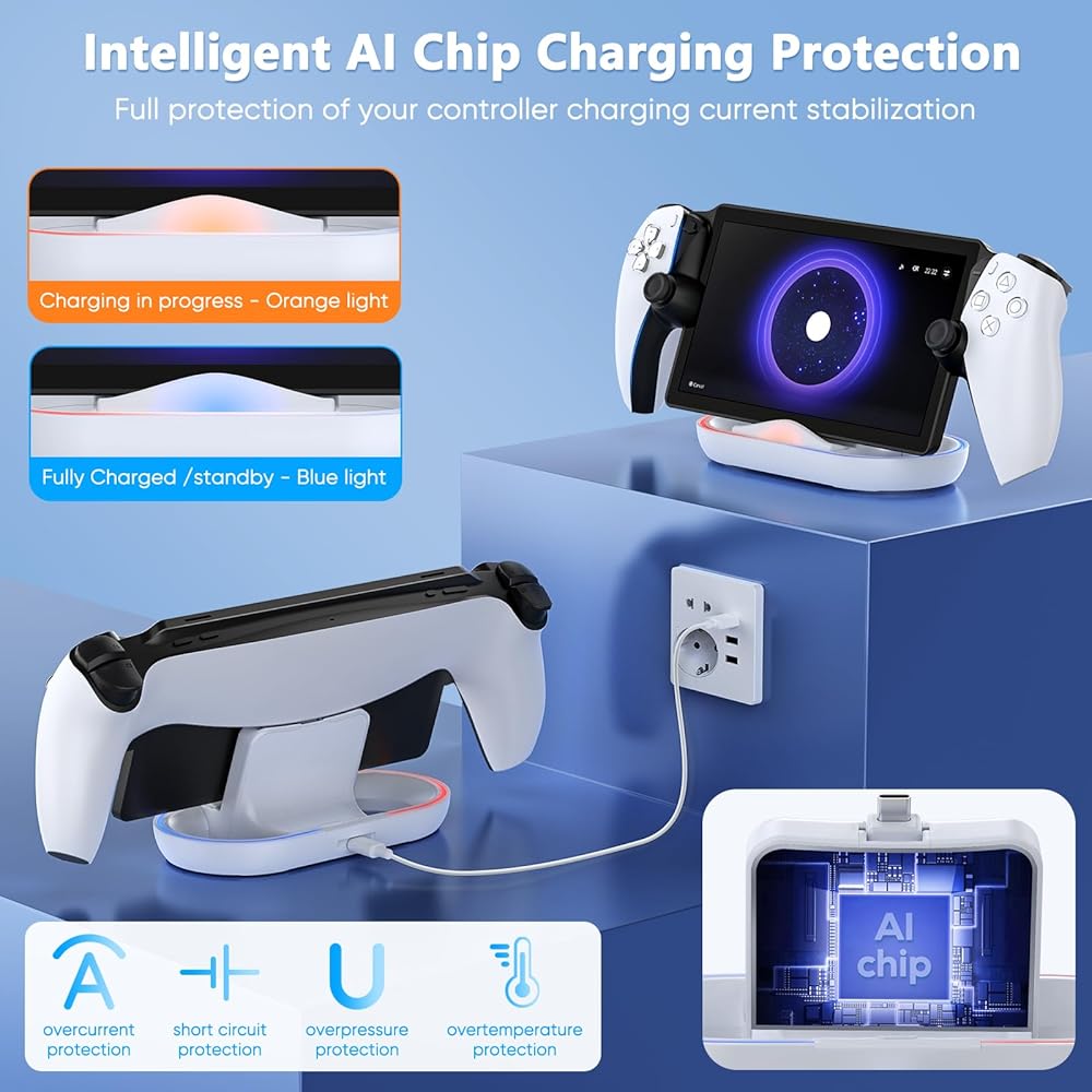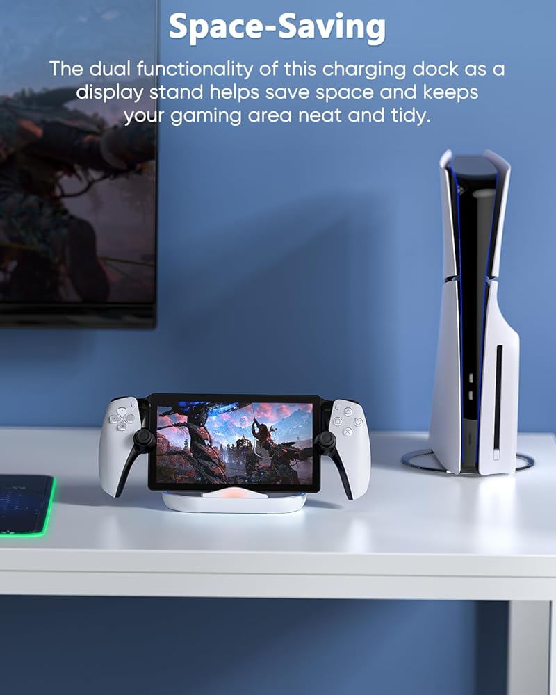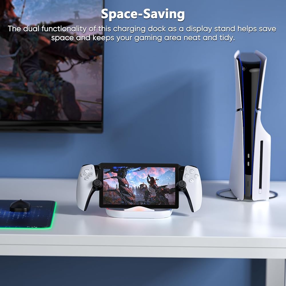 𝙎𝙩𝙖𝙗𝙞𝙡𝙞𝙩𝙮 & 𝘼𝙣𝙩𝙞-𝙎𝙡𝙞𝙥 𝘿𝙚𝙨𝙞𝙜𝙣 𝙎𝙩𝙖𝙣𝙙: The charging stand is engineered with additional weight and an anti-slip design, ensuring a stable and secure base that perfectly complements your Ps portal charging dock station, making it a standout addition to your gaming setup.