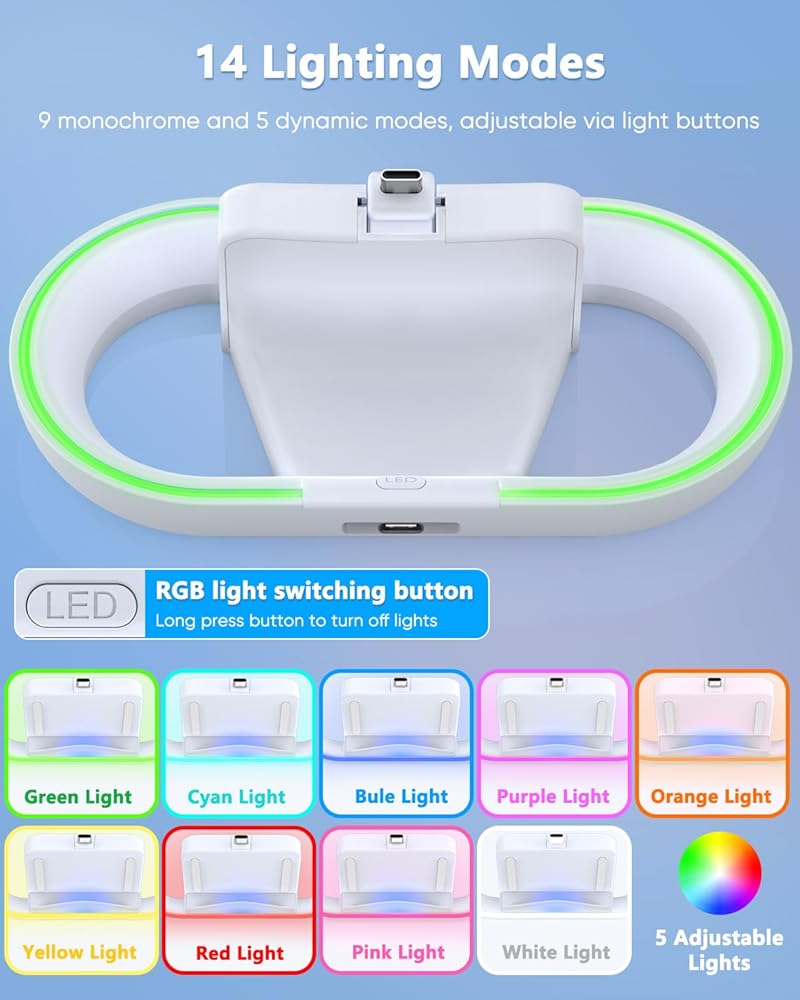 𝙄𝙢𝙢𝙚𝙧𝙨𝙞𝙫𝙚 𝙍𝙂𝘽 𝙇𝙞𝙜𝙝𝙩 𝙎𝙩𝙧𝙞𝙥 𝘽𝙖𝙨𝙚: Elevate your gaming ambiance with a dazzling RGB light at the base of the charging stand, creating a mesmerizing visual experience that sets it apart as an essential part of your PlayStation Portal accessories collection.