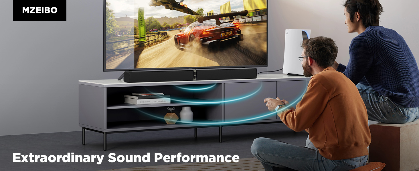 MZEIBO TV Sound Bar, Sound Bars for Smart TV, Bluetooth 5.0 Soundbar 60W 32Inch Detachable Soundbars with HDMI-ARC/Optical/AUX Connection, TV Speakers Soundbar for Home Theater Audio