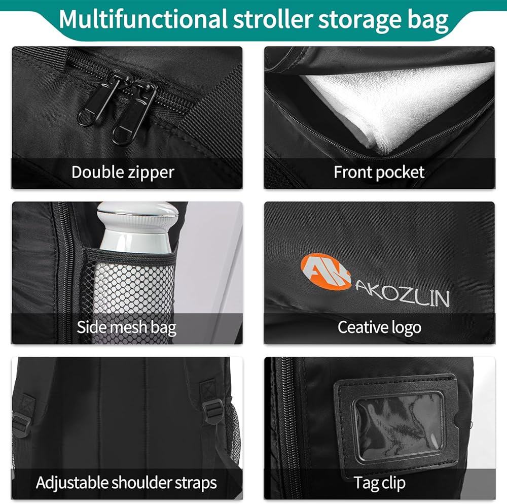 【Large Capacity,Easy to travel】AKOZLIN stroller bag make it convenient to carry your baby stroller out, With our stroller backpack to travel, just free your hand!It have 2 mesh pockets on the side and 2 big front bag,That is really perfect for storing baby bottle,diapers, umbrellas, snacks,personal items and some toy accessories.