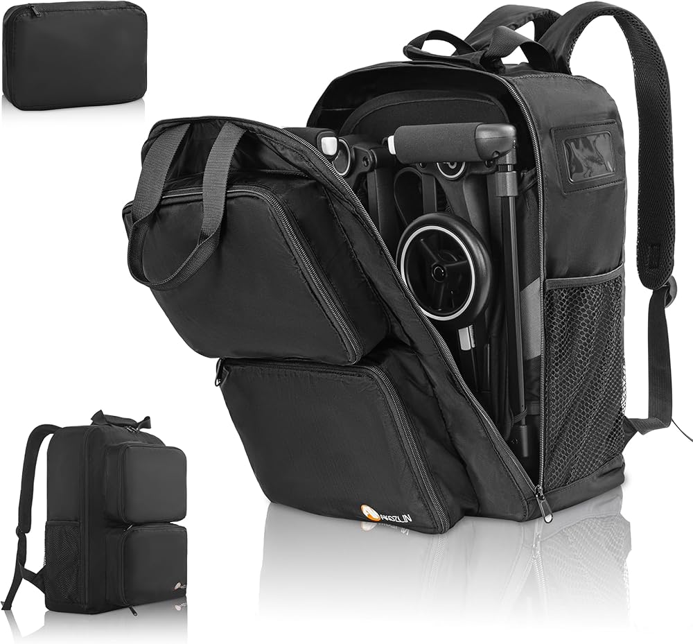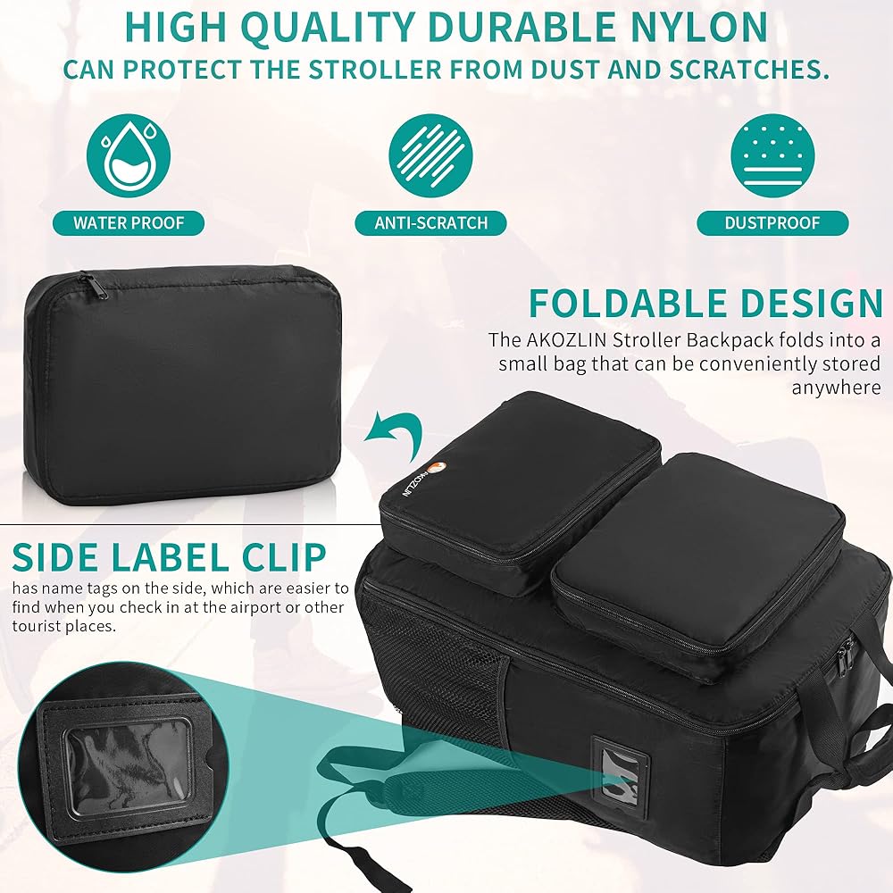 【Durable and Waterproof】Material:durable nylon,can protect stroller from dirt and scratch while traveling.It is a regular backpack and can be used as a travel backpack which allows to fits anything you need.