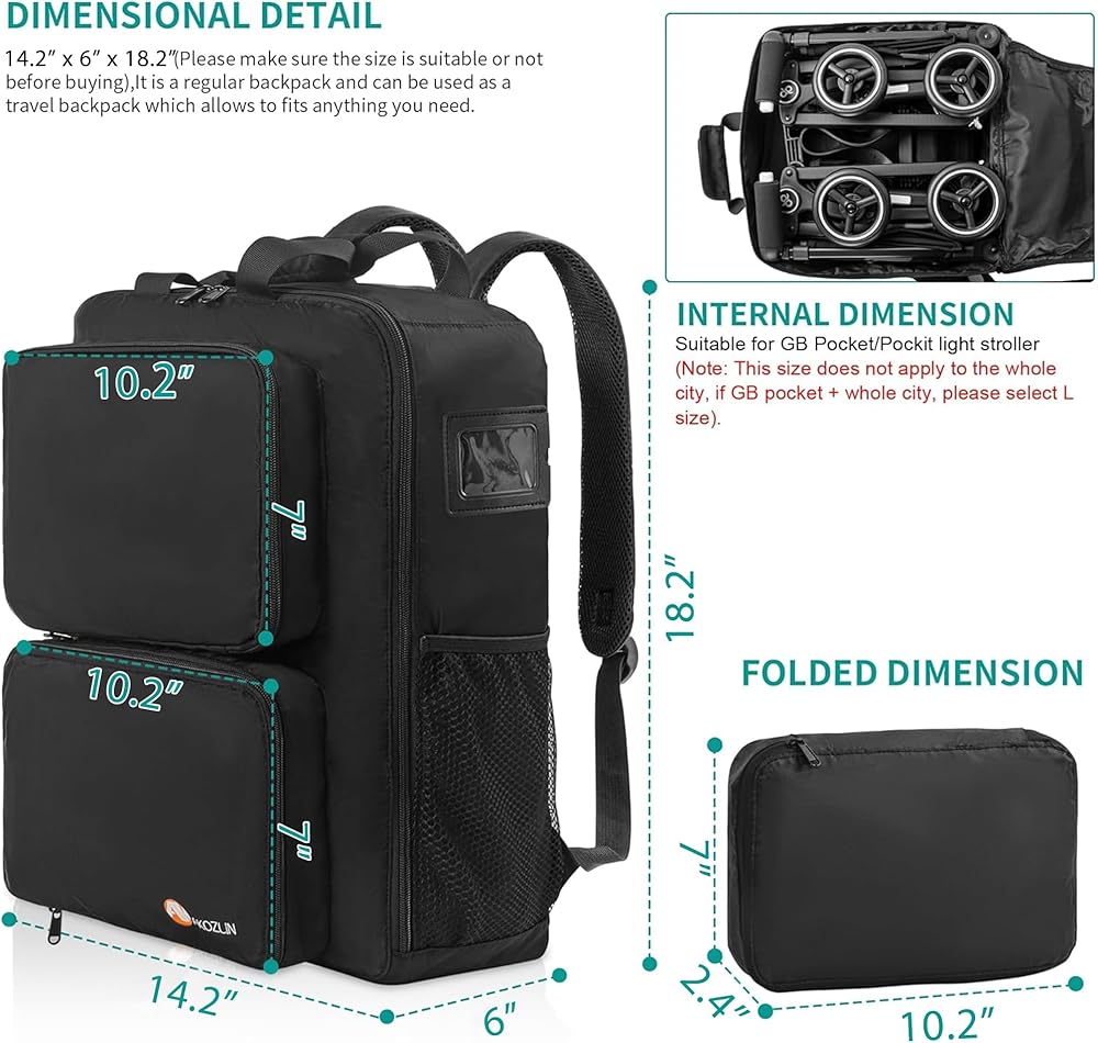 AKOZLIN Foldable Stroller Travel Bag Backpack 14.2"x8.7"x20.5"Compatible with GB Pockit+ All City/GB Pockit Air All Terrain/Gb Pockit Stroller Upgrade Version