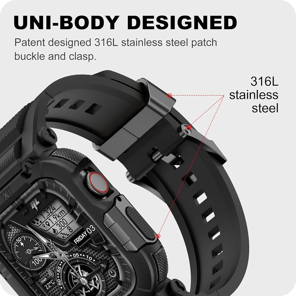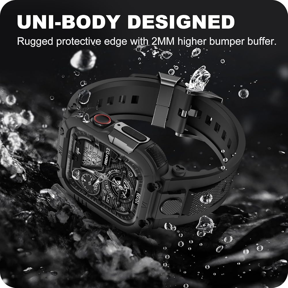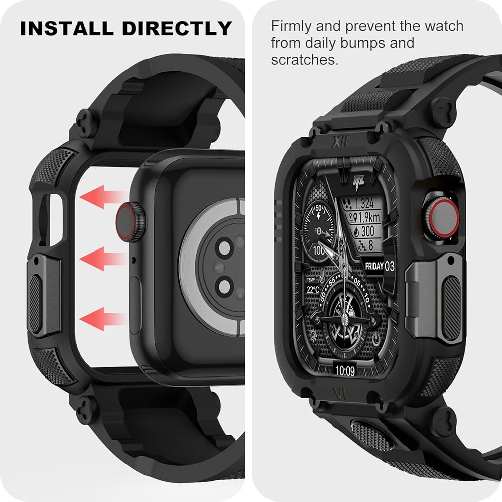 【Compatible Models】: This men sport bands compatible for black apple watch band 45mm / 44mm / 42mm with bumper case for iWatch Series 9 8 7 6 5 4 3 2 1 SE. Fits wrist size from 5.70" to 8.75" (145mm-220mm).