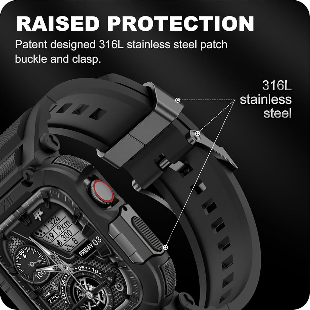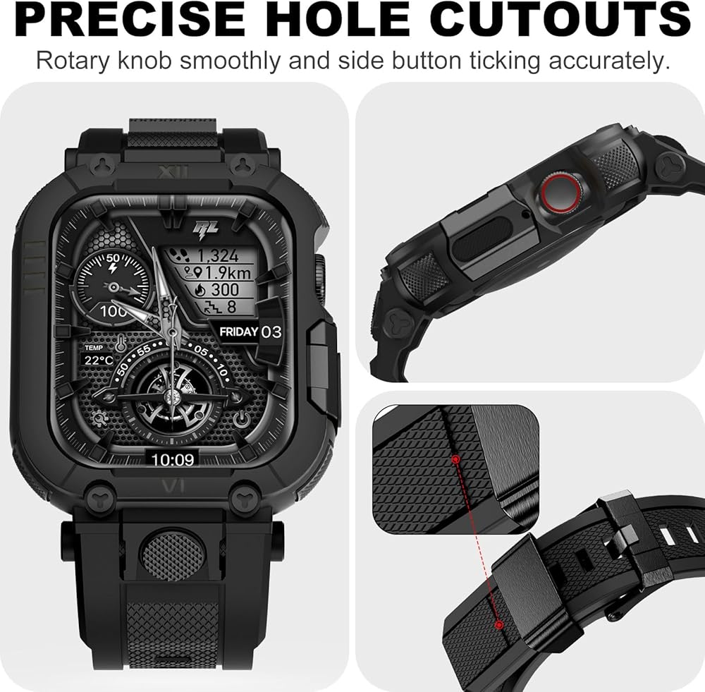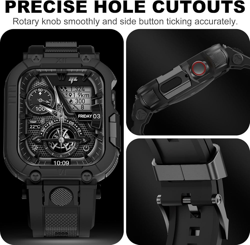 【Precise Hole Cutouts】Rotary knob smoothly using and side button ticking accurately with non-slip texture, speaker and mic accessible makes the apple watch a connotative and cool looking.