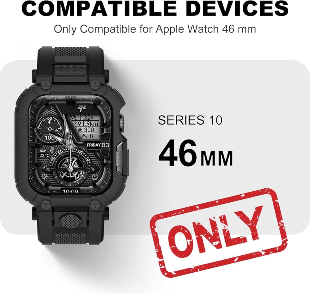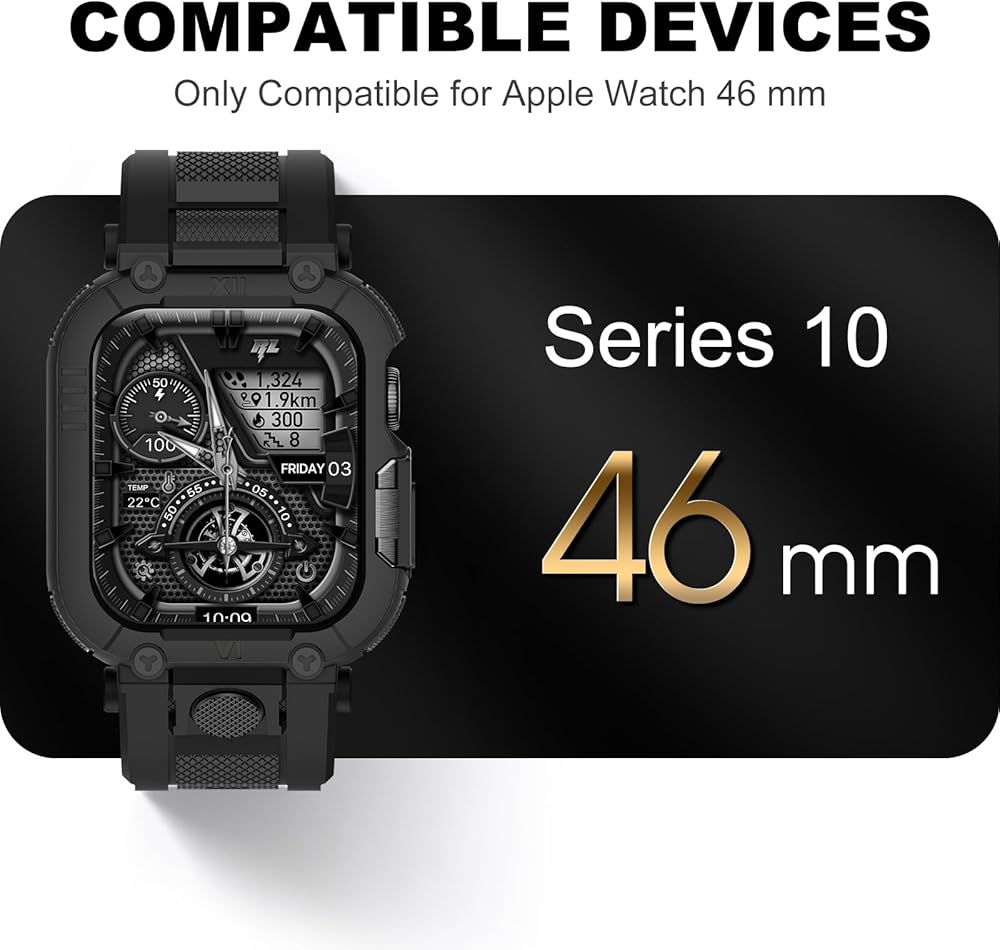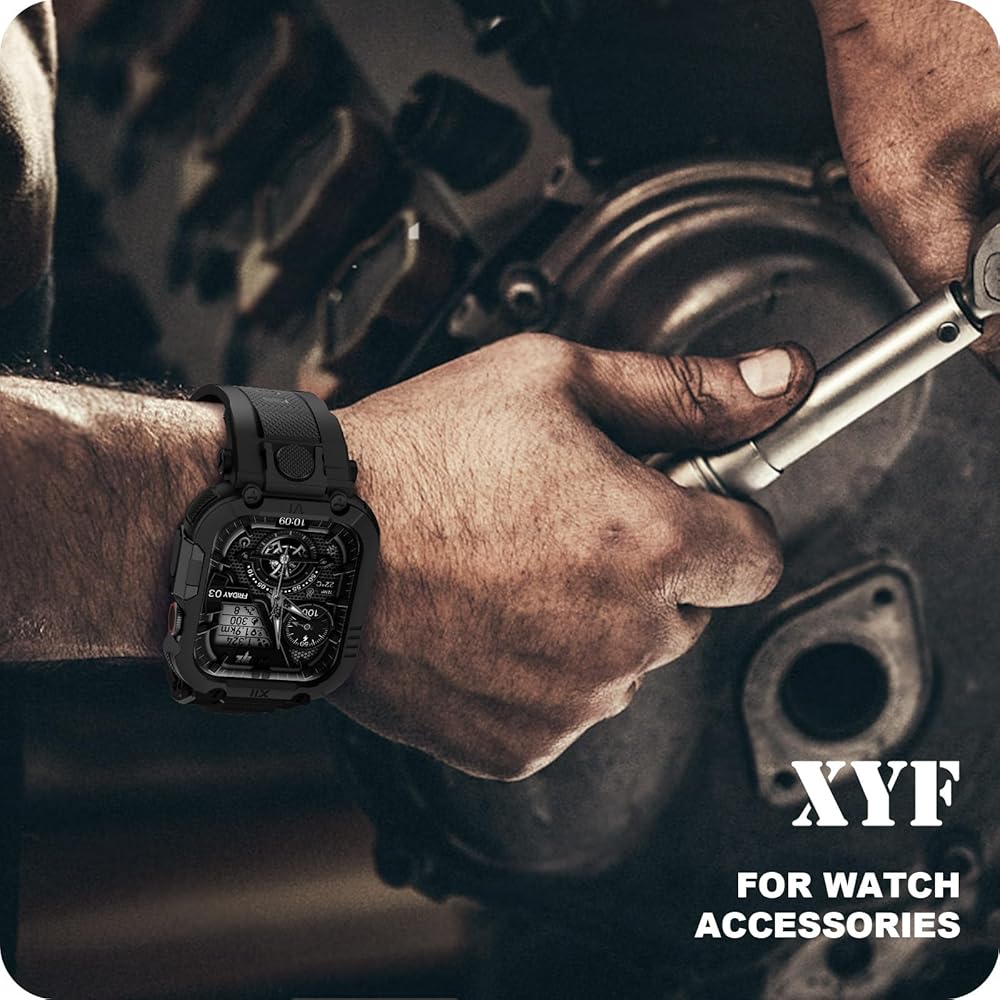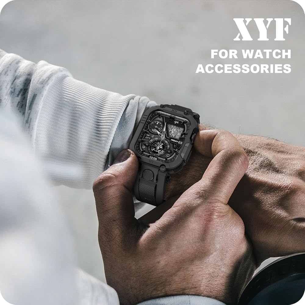 XYF Bands Compatible for Apple Watch 46mm 45mm 44mm 42mm Wristband, Rugged Men Sport Matte Silicone Metal Bumper Case Strap for iWatch Series 10 9 8 7 6/SE 5 4 3 2 1