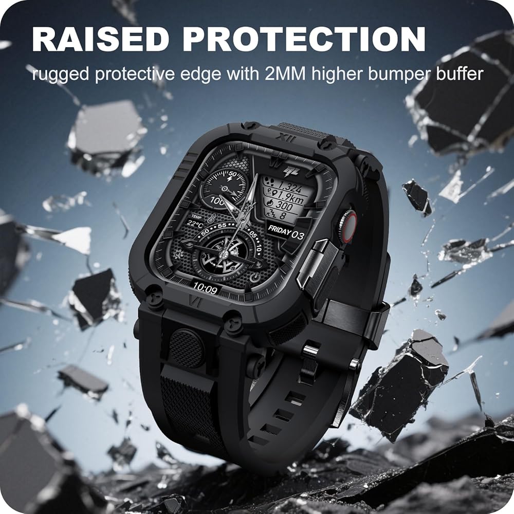 【Raised Protection】: Rugged protective bezel edge and 2MM high buffer bumper shockproof to prevent the apple watch screen from daily bumps and scratches. [Product No Glass Screen]