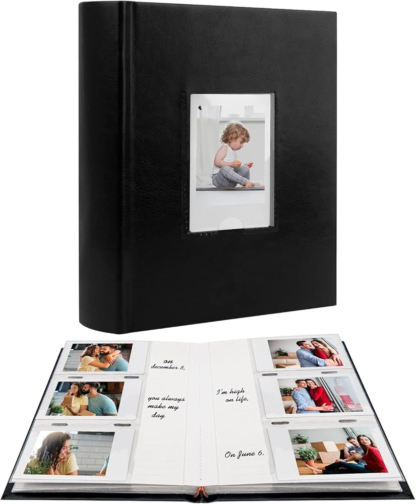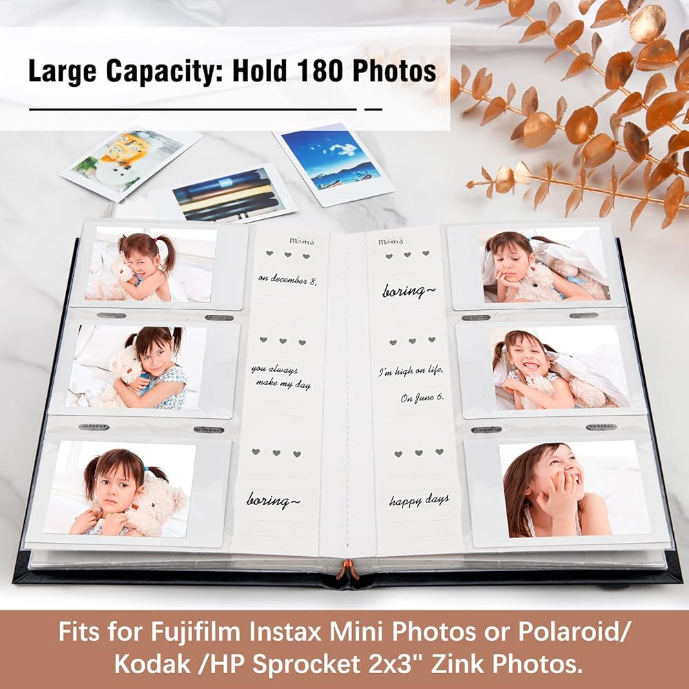 Photo Album for Fujifilm Instax Mini Camera, Photo Album for Polaroid, Leather Cover, 180 Pockets 2x3 with Writing Space for Instax Mini 12 11 9 40 8 7 Evo LiPlay Instant Camera (Black)