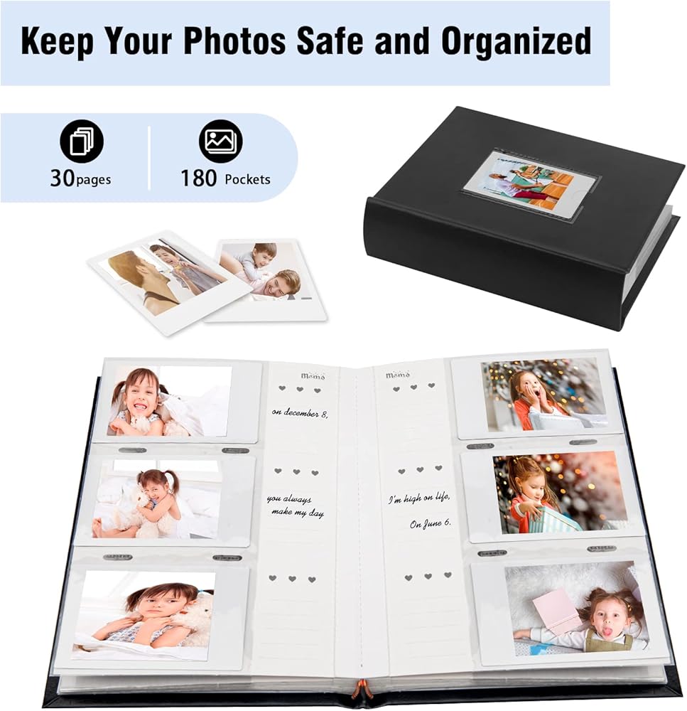 🌹【Memo Area & Inner Pages】- The photo album hold 180 photos, each page can display 3 photos. Has a dedicated memo writing area for each pocket, good to record something on it, opens like a book for easy viewing and record.
