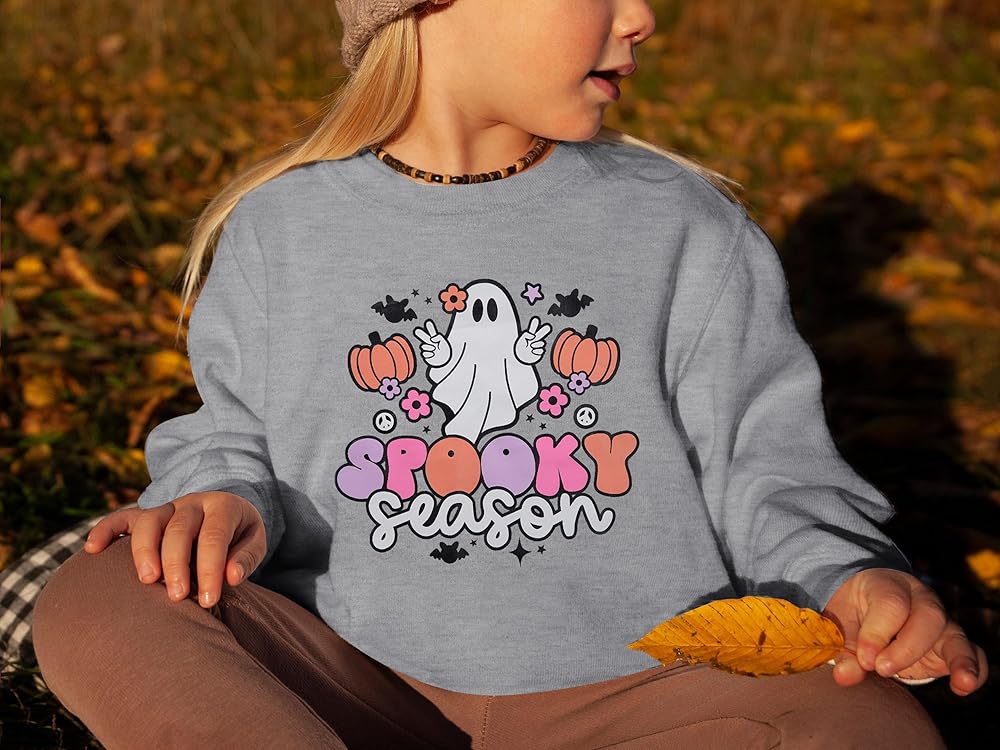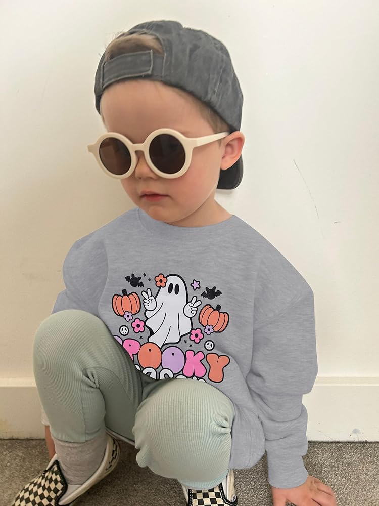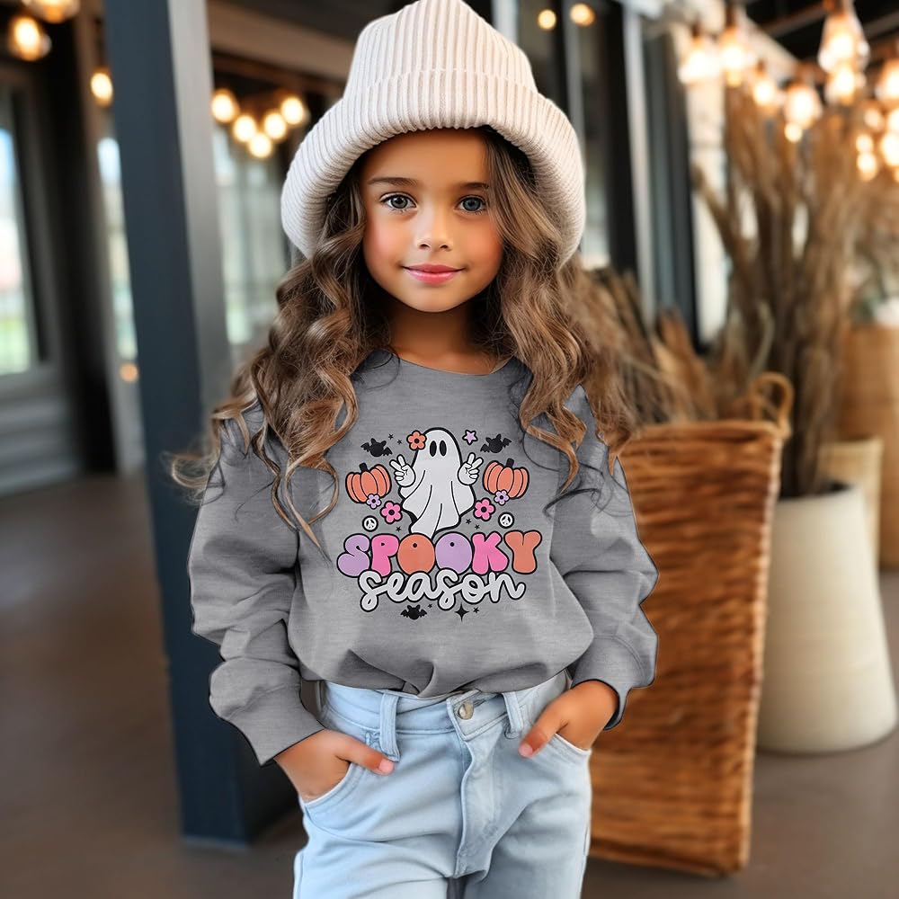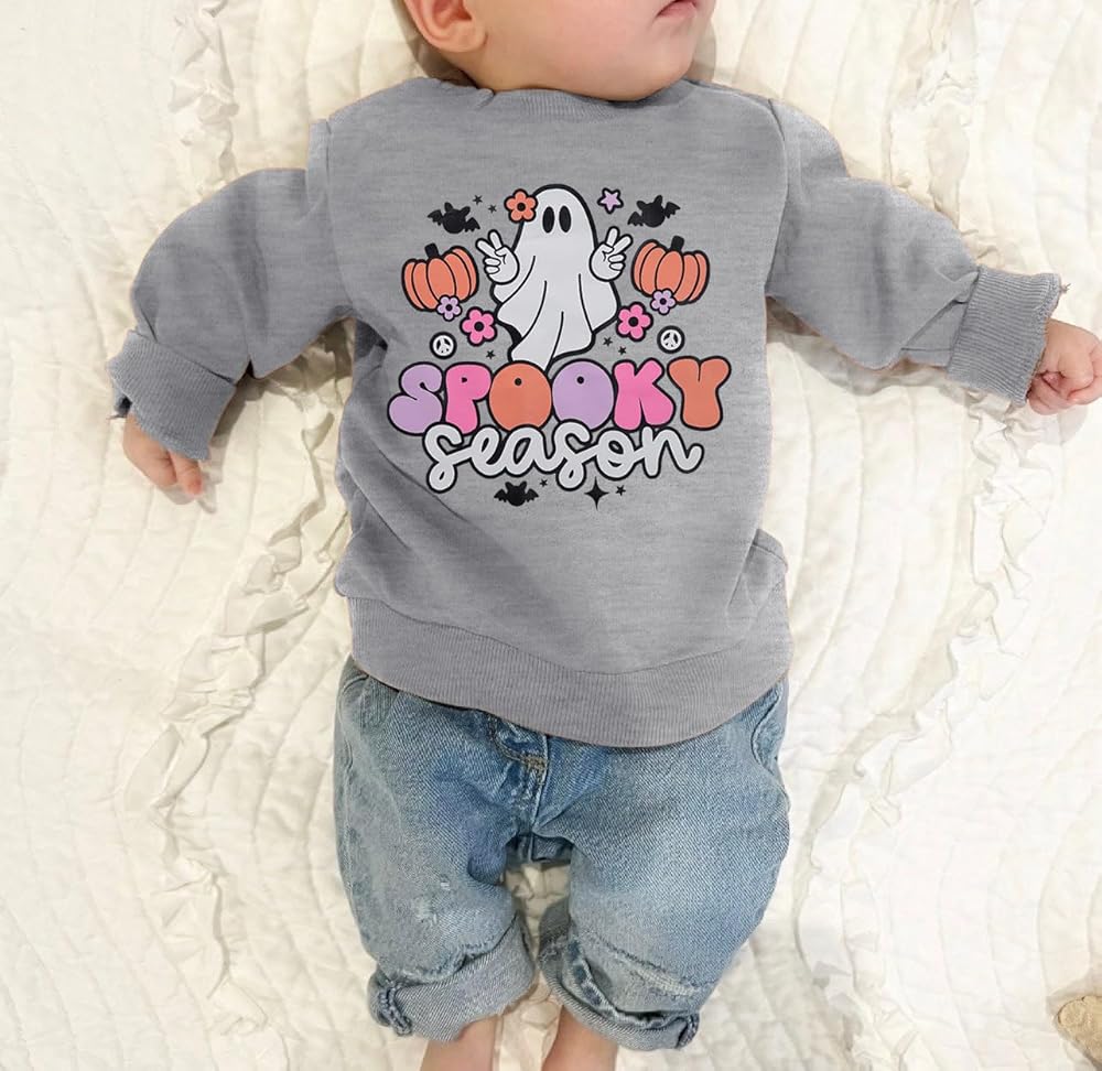 DESIGN: Cute Ghost graphic, baby Spooky Season Ghost halloween sweatshirt, toddler girls boys long sleeve pullover shirt, kids halloween sweater tops.