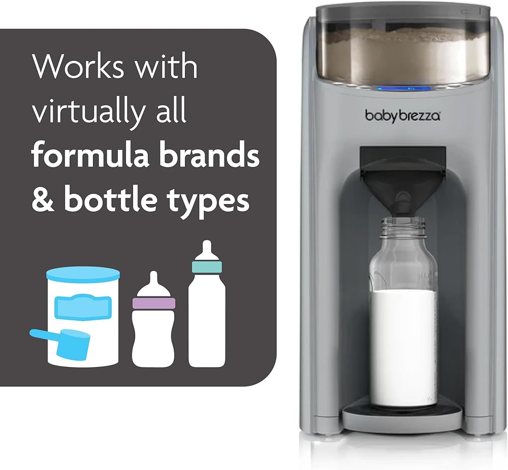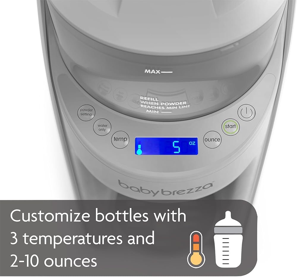 Baby Brezza Formula Pro Advanced is the most advanced way to automatically make a warm, formula bottle instantly. No measuring, no mixing and no fuss. You can customize the perfect bottle for your baby by choosing 1 ounce increments between 2-10 ounces, 1 of 3 temperature settings or dispensing water only. It works with virtually all brands of formula and all bottle brands and sizes. BPA-FREE. NOTE: The level will appear higher than the ounce size selected because of added powder volume and/or variance in bottle markings.For Example:4 Ounces of water plus powder volume is approximately 4.5-4.75 Ounces depending on your formula powder type.