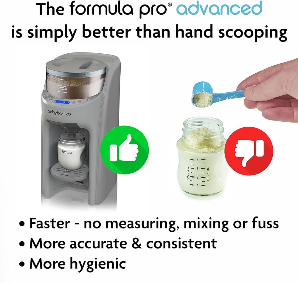Baby Brezza New and Improved Formula Pro Advanced Formula Dispenser Machine - Automatically Mix a Warm Formula Bottle Instantly - Easily Make Bottle with Automatic Powder Blending, Silver Grey